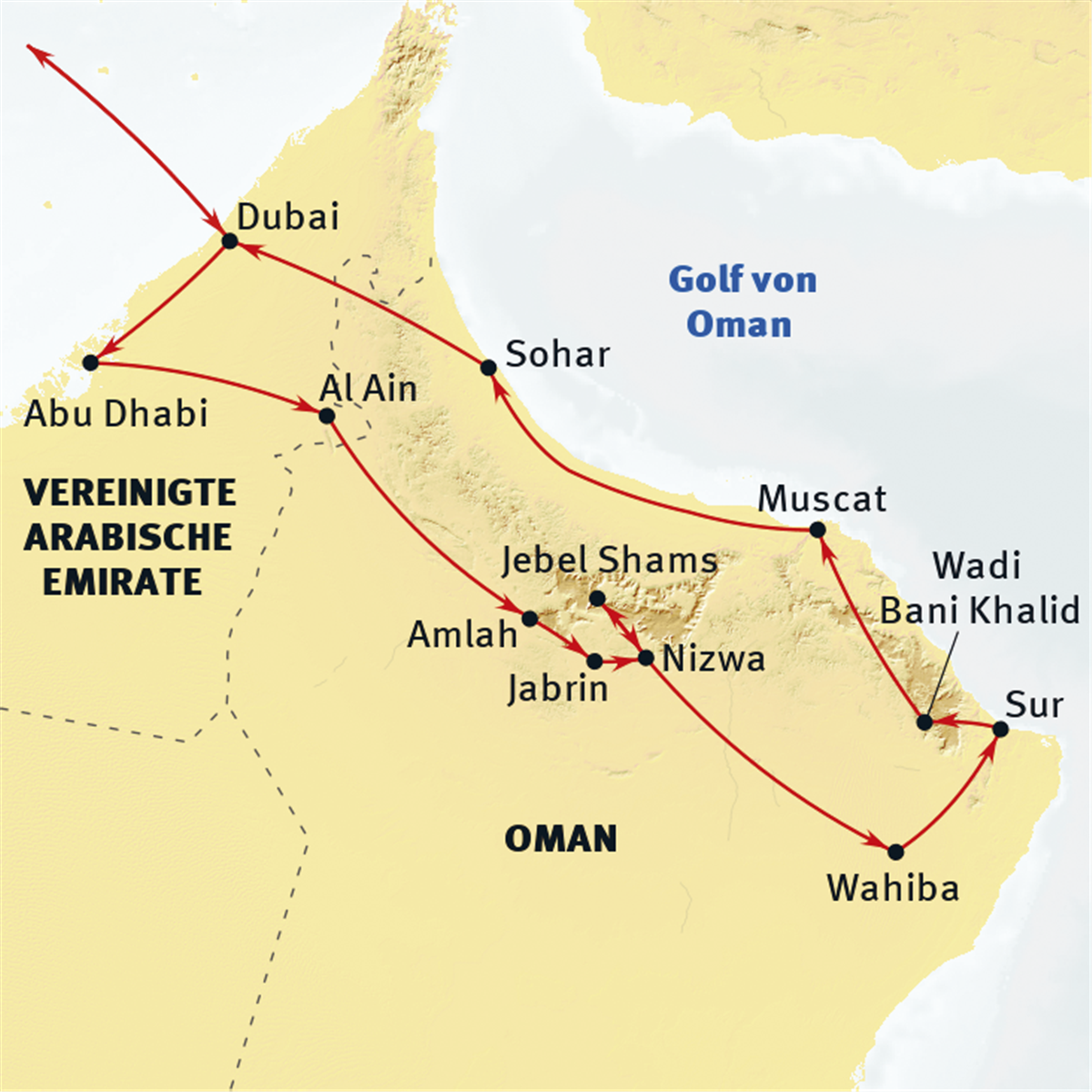 Diese Reise verbindet die glitzernden Metropolen der Vereinigten Arabischen Emirate mit der stillen Schönheit des Sultanats Oman. Zwischen futuristischen Skylines in Dubai und Abu Dhabi und den traditionsreichen Landschaften rund um Muscat erleben Sie einen faszinierenden Kontrast. Oman zeigt sich authentisch, ruhig und voller natürlicher Anmut – ein Ort der Besinnung fernab westlicher Hektik. Komfortable Hotels, ein Wüstencamp und Fahrten im Reisebus sowie Geländewagen machen die Reise erlebnisreich und angenehm zugleich.