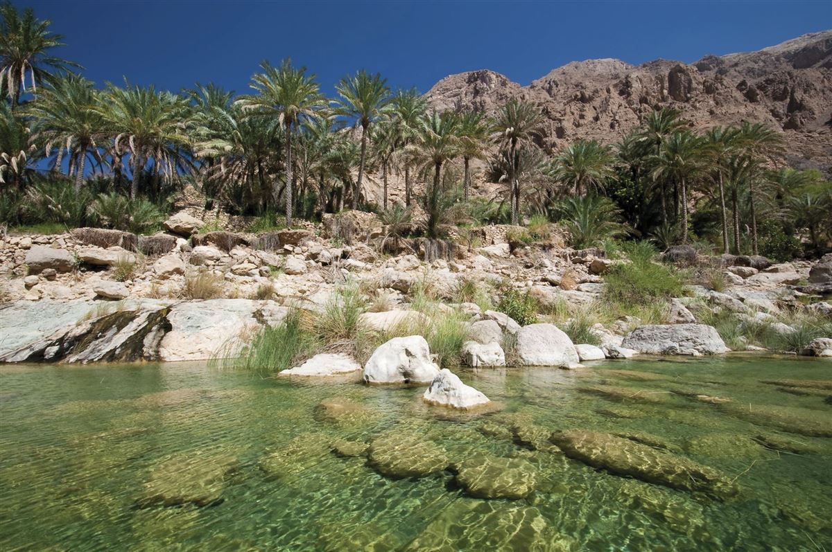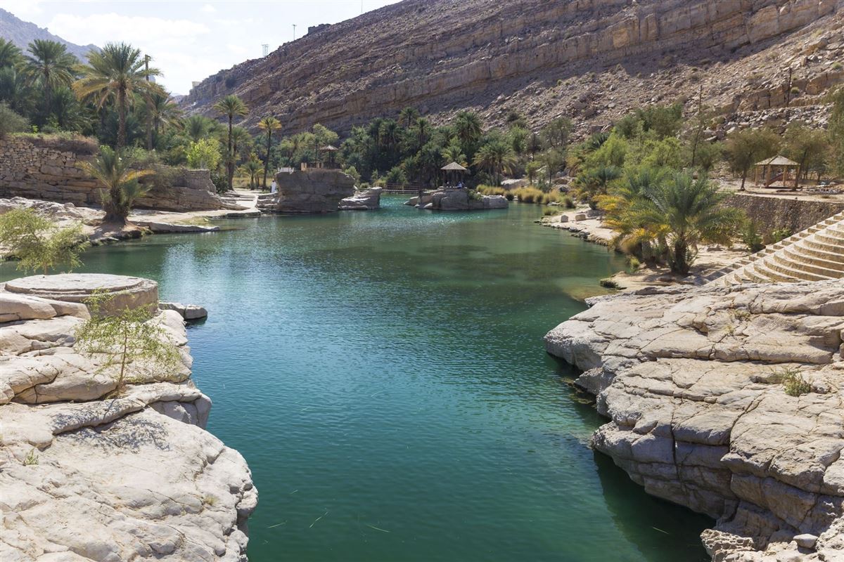 Wer eine Rundreise durch den Oman unternimmt und die Küstenstraße von Muscat nach Sur entlang fährt, der passiert den traumhaften Wadi Shab. Ein Wadi bezeichnet einen ausgetrockneten Flusslauf oder ein Tal, welches nach starken oder länger anhaltenden Regenfällen wieder mit sprudelndem Wasser gefüllt wird. Im Oman finden sich viele solcher Wadis, die mit spektakulären Felsschluchten, glasklarem Wasser und üppiger Vegetation beeindrucken.Der Wadi Shab kann ausgezeichnet zu Fuß erkundet werden. Dadurch können die schroffen Felsformationen, die tiefen Schluchten und natürliche Pools voller türkis-blauen Wassers ausgiebig entdeckt werden. Sie tauchen in eine exotische Welt voller weißer Felsen, Palmen und Höhlen voller glasklarem Wasser ein. Bei einem Ausflug in ein Wadi sollten Sie stets auf den Wetterbericht achten und wenn möglich festes Schuhwerk tragen.