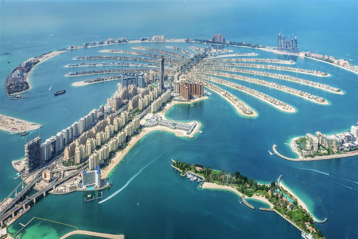 Bei einer Rundreise durch die Vereinigten Arabischen Emirate sollten Sie auf jeden Fall einen Stop in Dubai City, der größten Stadt der Emirate einplanen. Seit vielen Jahren ist in dieser bemerkenswerten Stadt ein wahrer Bauboom ausgebrochen und die Planer überbieten sich mit Mega-Projekten der Superlative, nicht zuletzt steht mit dem Burj Khalifah dort auch das aktuell höchste Gebäude der Erde. Ein ganz besonderes Projekt wurde bereits vor 20 Jahren geplant und gestartet: Die Anlage von künstlichen Inseln an der Küstenlinie in Form von Palmen. Diese aufgeschütteten Inseln sind so groß und auffällig, dass sie sogar aus dem Weltraum wahrgenommen werden können. Die Palm Island Jumeirah ist komplett fertiggestellt und erstreckt sich über mehrere Kilometer in den Persischen Golf hinein. Bei einem Besuch von Dubai im Rahmen einer Rundreise sollten Sie mit der Monorail über die Brücke auf die Palm Jumeirah fahren. Der gigantische Vergnügungskomplex Atlantis und kilometerlange Sandstrände bieten unvergessliche Erlebnisse auf dieser von Menschenhand geschaffenen Insel.