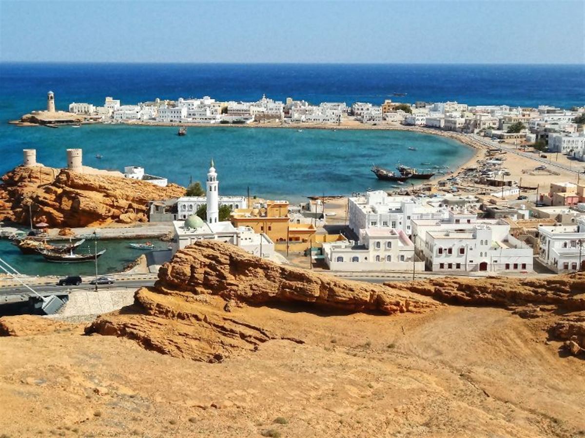 Fahrt in die Hafenstadt Sur, einst Omans bedeutendster Ostafrika-Hafen, die aber mit Abschaffung des Sklavenhandels und dem Untergang der Schiffsflotte zunehmend an Bedeutung verlor. Besichtigung einer Dhau-Werft (die Boote werden immer noch im althergebrachten Holzstil gebaut) und des Fischmarktes. Anschließend das Wadi Shab mit Plantagen, wir überqueren das Wadi mit kleinen Booten. Das Mittagessen in einem lokalen Restaurant. Nach einem Halt am Bima Sinkhole geht es weiter zum Wadi Arbyn und dann entlang der Küste über Quriat nach Muscat. (330 km)