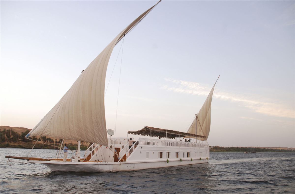 Morgens kurze Fahrt nach Theben West. Wir besuchen das Tal der Könige und können auch ein Grab von innen besichtigen. Danach Stopp am Tempel der Königin Hatschepsut und an den Memnon-Kolossen, Wächter eines mittlerweile nicht mehr vorhandenen Tempels. Einschiffung auf unserer Dahabeya in Esna, wir sind also weiterhin in kleiner Gruppe unterwegs. Nach Begrüßung durch die Besatzung Beginn der Segelfahrt flussaufwärts durch die herrliche Nillandschaft. Unser erstes Reiseziel ist die Insel El Hegz, nördlich von Edfu gelegen. Das Abendessen wird an Deck serviert, während wir die Ruhe und die vorbeigleitende Nillandschaft genießen. Die erste Übernachtung auf dem Schiff. Wie bei Segeltouren üblich, kann es windbedingt zu Verzögerungen im Ablauf kommen. Bei Windstille wird der Nilsegler jedoch von einem Motorboot gezogen und der Reiseablauf sichergestellt. (60 km)