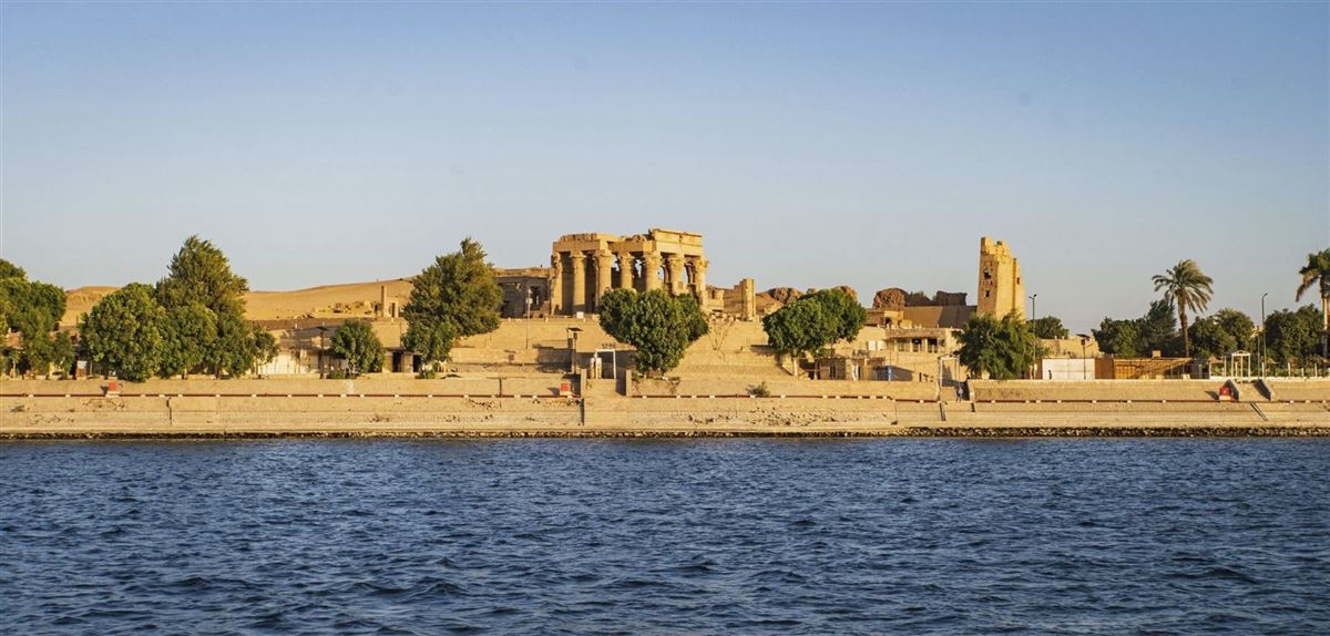Während der Segelfahrt vormittags nach Kom Ombo Zeit, um das beeindruckende Uferpanorama des Nils zu genießen. In Kom Ombo Besichtigung der Doppeltempelanlage des krokodilköpfigen Sobek und des Horus, auf einem Hügel über dem Nil gelegen. Wir segeln weiter und erreichen am frühen Abend unseren Ankerplatz für die Nacht, eine der kleineren Nilinseln. Das Abendessen bei Sonnenuntergang an Deck. (90 km)