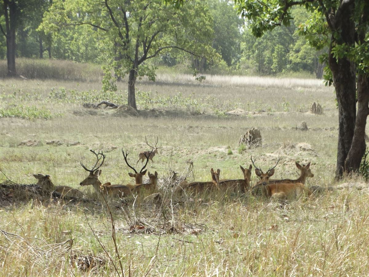 Heute fahren wir nach Kanha. Für die 250 Kilometer benötigen wir etwa 6 Stunden. Der Kanha-Nationalpark gilt als eines der besten Schutzgebiete Asiens. Neben Bengalischen Tigern beherbergt der Park asiatische Leoparden, Wildhunde, Honigdachse, Glattmantelotter, Vampirfledermäuse und das indische Schuppentier. Auch eine Vielzahl an Vögeln und Schmetterlingen finden im Park ein Zuhause.
