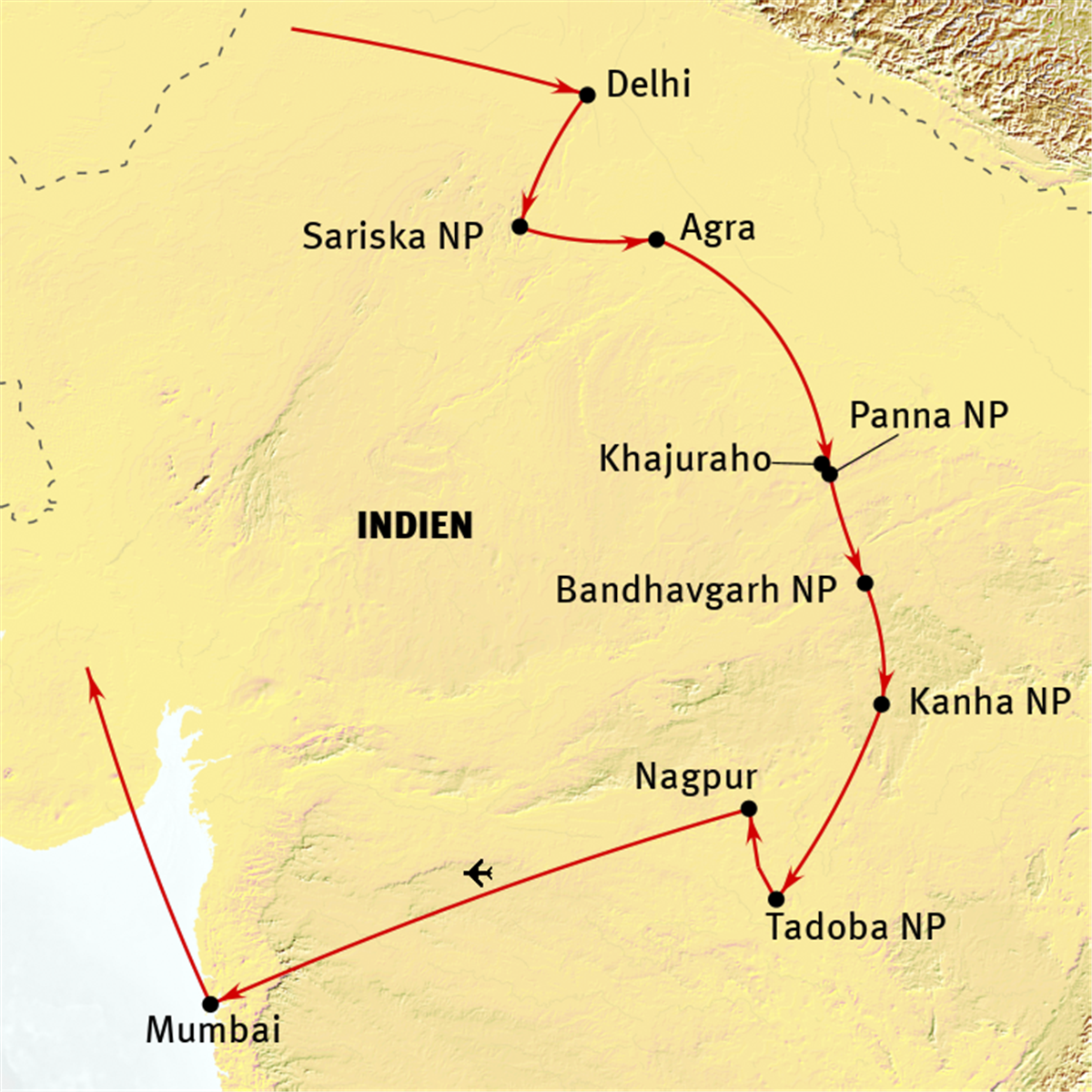 Am frühen Morgen gehen wir wieder auf die Pirsch nach wilden Tieren bei einer Safari im Nationalpark mit unvergesslichen Tierbegegnungen. Später Transfer zum Flughafen Nagppur (115km, ca 2,5 Std.) und Flug nach Mumbai.