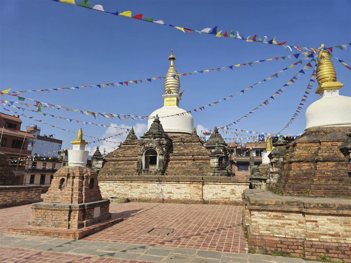 Nachdem wir hoffentlich einen schönen Sonnenaufgang über den Achttausendern um den Mt. Everest erlebt haben, beginnen wir das ganztägige Wanderprogramm in der Umgebung von Dhulikel. Unser Weg führt durch Kiefernwälder hinauf auf einen Hügel zur Stupa von Namobuddha, einem wichtigen buddhistischen Wallfahrtsort. Der Legende nach opferte sich Buddha in einer früheren Inkarnation hier einer hungrigen Tigerin und deren Jungen, um sie so vor dem Verhungern zu retten. Nach der Besichtigung geht es wieder hinab ins Kathmandu-Tal zum mittelalterlichen Newari-Dorf Panauti. Am Spätnachmittag sind wir zurück in Dhulikel.