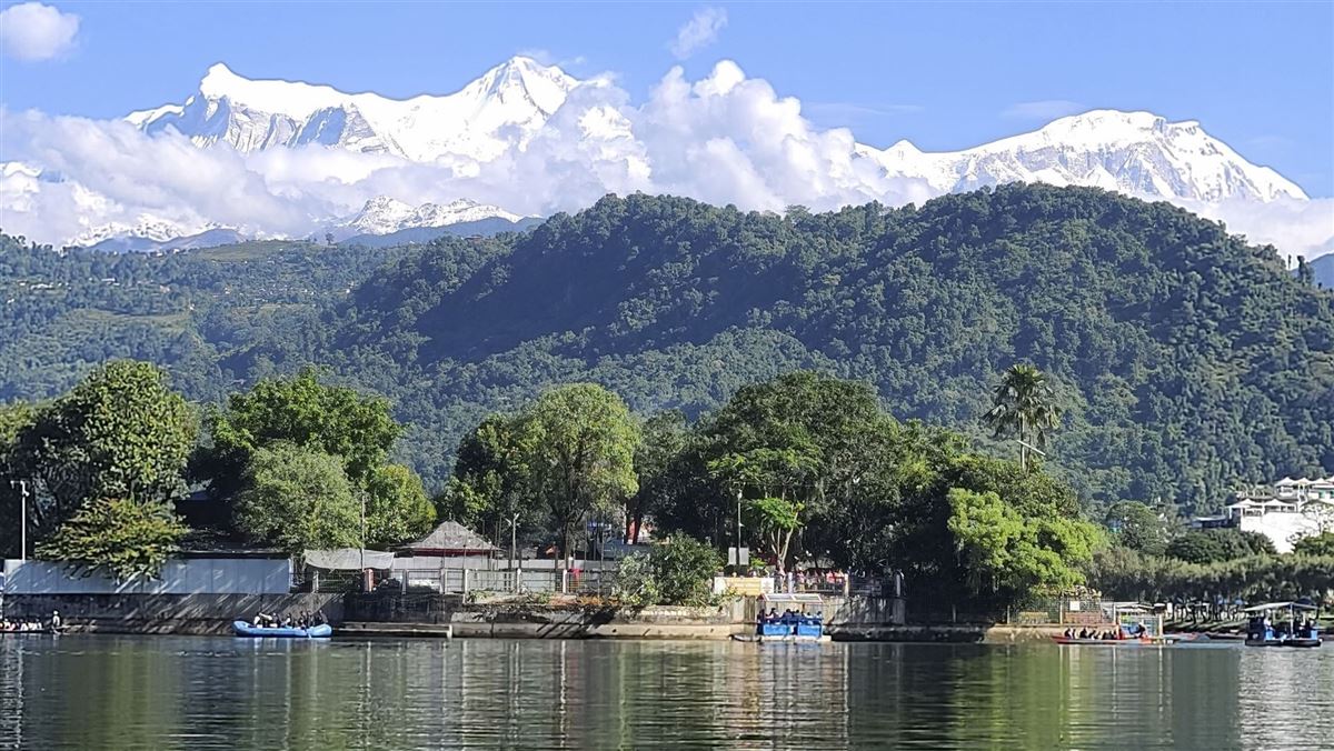 Am frühen Morgen eine kurze Fahrt nach Sarangkot, wo wir hoffentlich einen wolkenlosen Sonnenaufgang erleben, der uns einen Blick auf die mächtige Annapurna-Gebirgskette bietet. Im Anschluss unser Aufstieg zur großen Shiva-Statue. Von dort führt uns ein schöner Wanderweg zur World Peace Pagoda. Von der Plattform haben wir einen wunderbaren Blick über ganz Pohkara und den Phewa-See. Durch kleine Dörfer unser Abstieg zurück ins Tal. Hier besuchen wir die Davis-Falls und das International Mountain Museum. Am Nachmittag erwartet uns eine Bootsfahrt auf dem herrlichen Phewa-See.