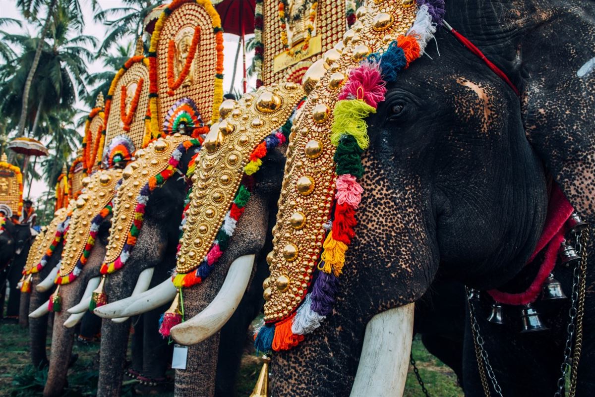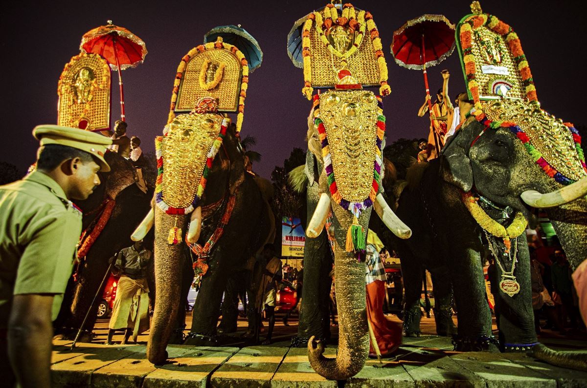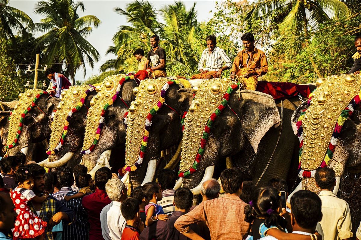 Nach dem Frühstück starten wir unsere Fahrt nach Cheruthuruthy (200 km, ca. 6 Std.). Am Nachmittag machen wir uns auf den Weg zum farbenfrohen Festivalgelände. Dort erwartet uns das beeindruckende Elefanten-Festival im traditionsreichen Aruvai Cheravarambathu Bhagavathi-Tempel. Bei dieser einzigartigen Feier erleben wir hautnah, wie kunstvoll geschmückte Elefanten zu Ehren des alten Tempels und seiner jahrhundertealten Traditionen durch bunte Zeremonien und festliche Musik in Szene gesetzt werden.