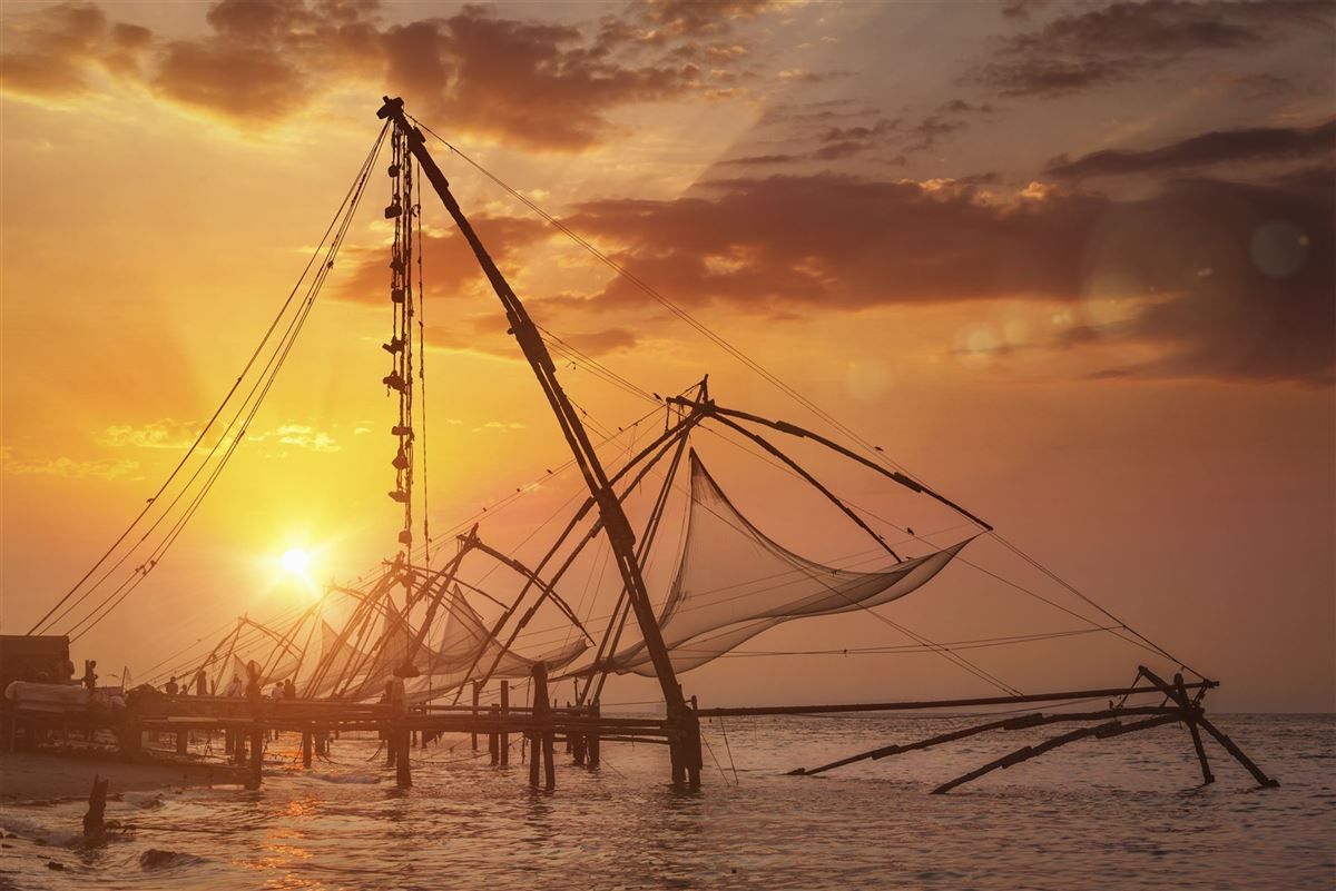 Nach dem Frühstück besuchen wir die Tanzschule Kalamandalam. Kalamandalam wurde 1930 vom berühmten Dichter Padmabhooshan Vallathol Narayana Menon am Ufer des Flusses Nila im Dorf Cheruthuruthy im Bezirk Thrissur gegründet und ist ein unsterblicher Name auf der kulturellen Landkarte Indiens. In einfachen Klassenzimmern werden in dieser Internatsschule einige der erstaunlichsten darstellenden Kunstformen Indiens unterrichtet. Wir werden eine geführte Tour durch verschiedene Klassen machen, um die Universität kennenzulernen und zu erleben. Nach dem Mittagessen Fahrt nach Cochin (120km, ca. 3 Std.). Cochin, seit der Römerzeit dokumentiert, ist die älteste europäische Siedlung in Indien. Mit seinem bezaubernden jüdischen Viertel, den malerischen chinesischen Fischernetzen, den portugiesischen Kirchen, den Hindu-Tempeln und den geschäftigen Gewürz- und Antiquitätenbasaren bietet Cochin eine nahtlose Mischung aus verschiedenen architektonischen und religiösen Einflüssen. Die alte Hafenstadt ist heute in zwei Teile geteilt: die Altstadt von Fort Cochin auf der Halbinsel mit ihren verwinkelten Gassen, die von Handelshäusern und Gewürzmärkten gesäumt sind, und die moderne, geschäftige Stadt Ernakulam auf dem Festland. Der Abend steht uns zur freien Verfügung, um durch die Straßen von Fort Cochin zu schlendern.