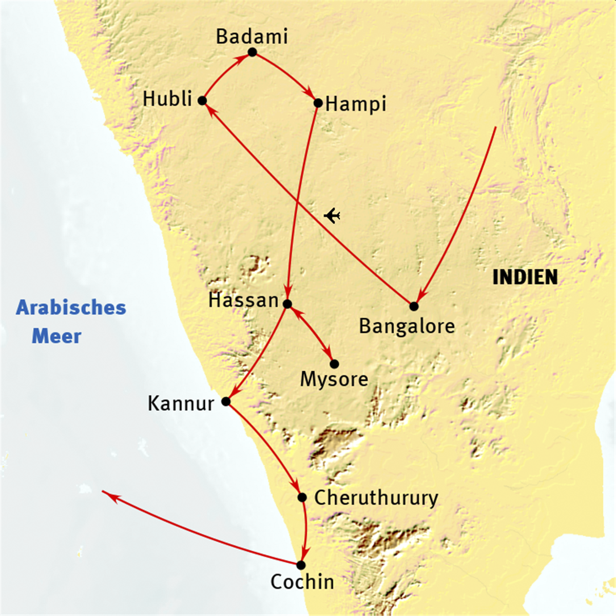 Unsere Ankunft in Bangalore am frühen Morgen und Transfer zum Hotel. Nach genügend Zeit zum Ausruhen und einem stärkenden Frühstück, starten wir mit unserer Besichtigungstour. Bangalore, die Hauptstadt des südlichen Bundesstaates Karnataka, ist eine moderne, kosmopolitische Stadt, die als eines der großen IT-Zentren Indiens gilt. Es ist eine zukunftsorientierte, junge und trendige Stadt mit einer Mischung aus neuen Einkaufszentren, Bars und Fast-Food-Lokalen, die Seite an Seite mit ihrer kolonialen Vergangenheit stehen. Die Stadt ist auch eine Fundgrube für traditionelles indisches Kunsthandwerk. Wir besuchen den Botanischen Garten Lal Bagh, den ISKON-Tempel und fahren am Vidhan Sabha vorbei. Am Nachmittag Transfer zum Flughafen und Flug nach Hubli.
