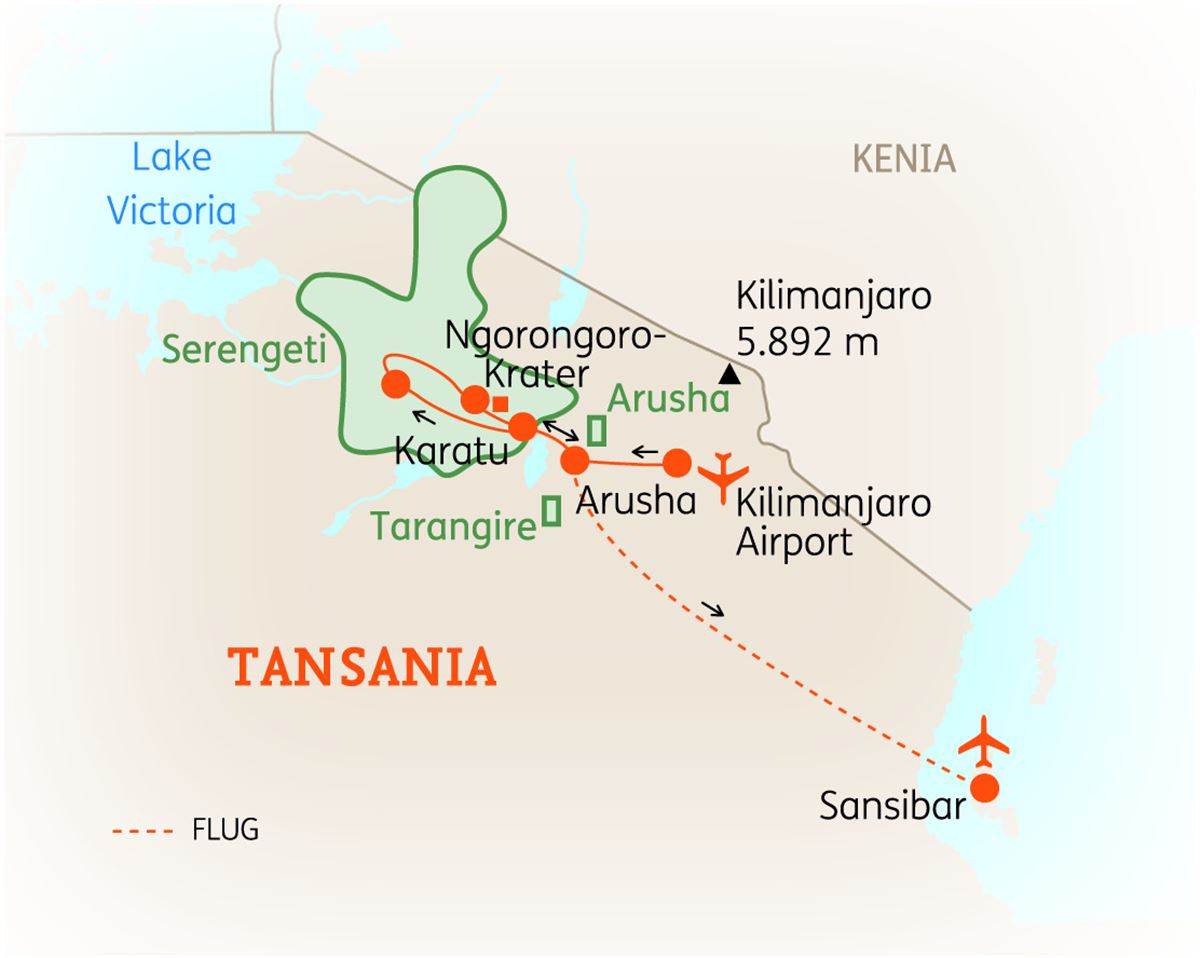 ArushaNgorongoroInsel SansibarMaranguKaratuSansibar Stadt