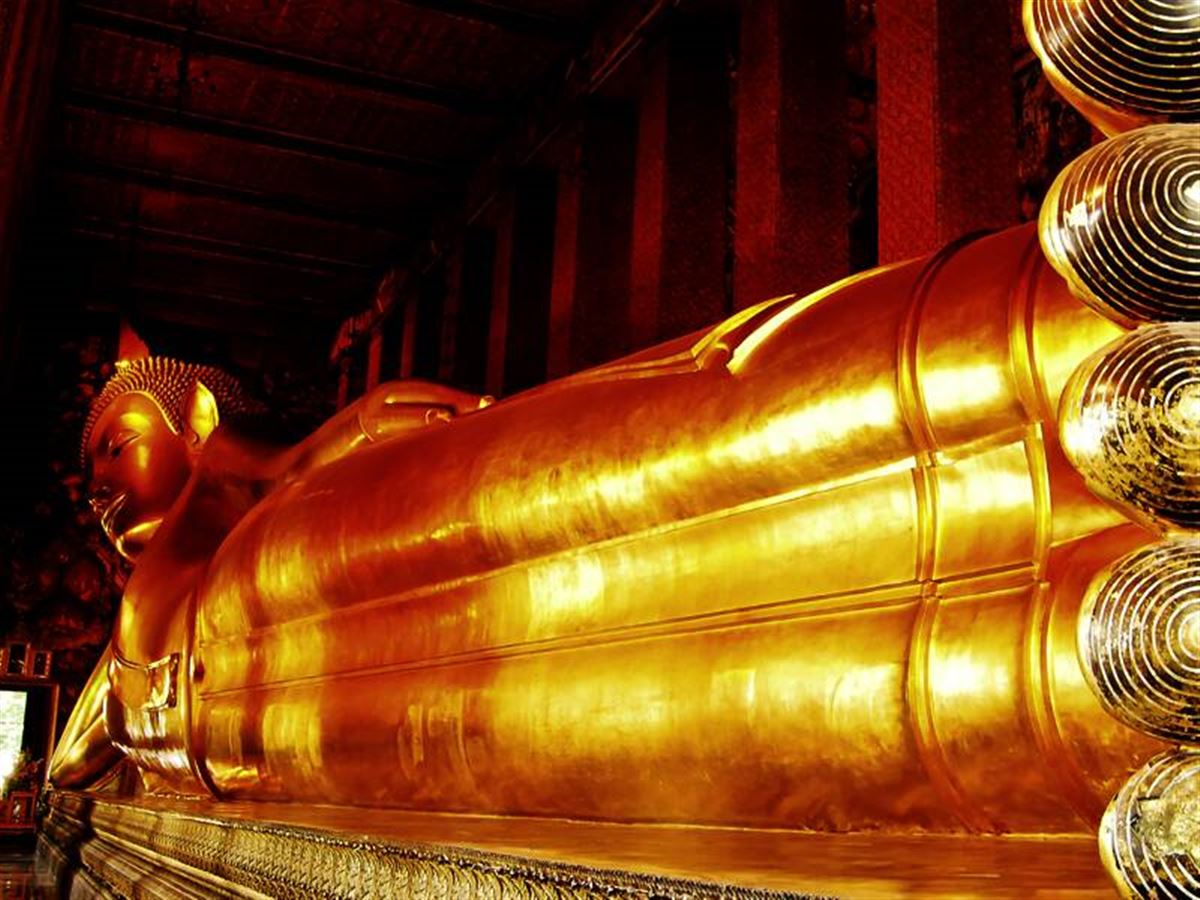 Um 8 Uhr geht's zusammen zur Morgenmusik im Wat Pho: Mönchsgesänge! Danach strahlen wir um die Wette mit dem liegenden Buddha. Mit dem Tuk-Tuk geht's über den Blumenmarkt zum Großen Palast. Nachmittags in Chinatown: Bunt, laut, lecker! Unbedingt Streetfood probieren! Und weil wir von Wats nicht genug kriegen, darf der Tempel des Goldenen Buddhas nicht fehlen. Mit der Sonne verschwinden wir im Nachtzug nach Ubon Ratchathani. Unsere Nachtmusik: das Ruckeln der Waggons ...