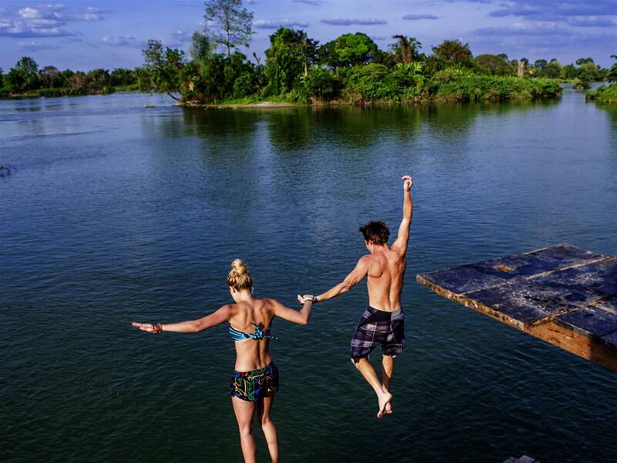 Tagesstart mit einer Radtour zur Insel Don Det – Alltag am Flussufer hier, Souvenirshops da. Kleine Badepause am Mekong? Erfrischt ins Dörfchen Ban Hang Khone und zu den Liphi-Wasserfällen. Zurück auf Los! Dann erkunden wir die 4000 Inseln per Boot: Dorfleben auf Don Loppadi – die Einwohner zeigen, wie sie Klebreis kochen und Körbe weben. Nächstes Insel-Tutorial: ein Fischer und seine Netzwurfkünste. Zum Sundowner gibt's gegrillten Fisch ... und eine Runde Schwimmen? Satt und glücklich legen wir wieder am Pier an.