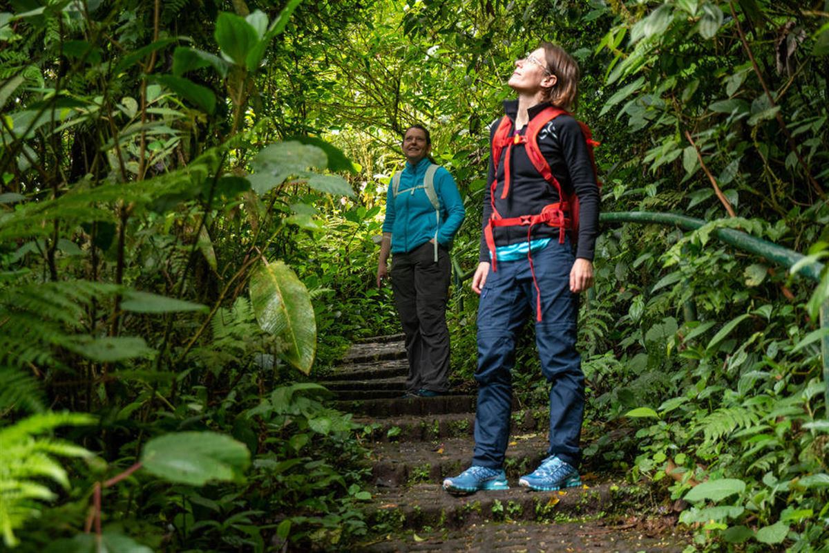 Unser Costa-Rica-Abenteuer beginnt! Wir fahren Richtung Norden bis zu einem der bekanntesten Vulkane des Landes: dem Poás (2.708 m). Im gleichnamigen Nationalpark unternehmen wir unsere erste Wanderung zum Kraterrand. Bromelien und Orchideen säumen unseren Weg. Oben angekommen, bewundern wir mit etwas Wetterglück sein eisblaues Seeauge. Mit einem Durchmesser von ca 1,5 km und einer Tiefe von rund 300 m ist er der zweitgrößte Vulkankrater der Welt. GZ 1-2 Std., ± 120 m. Danach geht es weiter in die Nebelwaldregion von Monteverde. Bei unserer Wanderung im Reservat von Santa Elena am 3. Tag fühlen wir uns in die Urzeit zurückversetzt. Die Atmosphäre zwischen Lianen, bemoosten und farnbesetzten Bäumen in einem der ursprünglichsten Wälder des Landes ist mystisch und märchenhaft zugleich. Mehr als 2.500 Pflanzen-, 100 Säugetier- und 400 Vogelarten können hier von uns entdeckt werden. GZ 2-3 Std., ± 270 m. Am Nachmittag können wir über die landestypischen Hängebrücken durch die Baumkronen spazieren (fakultativ).