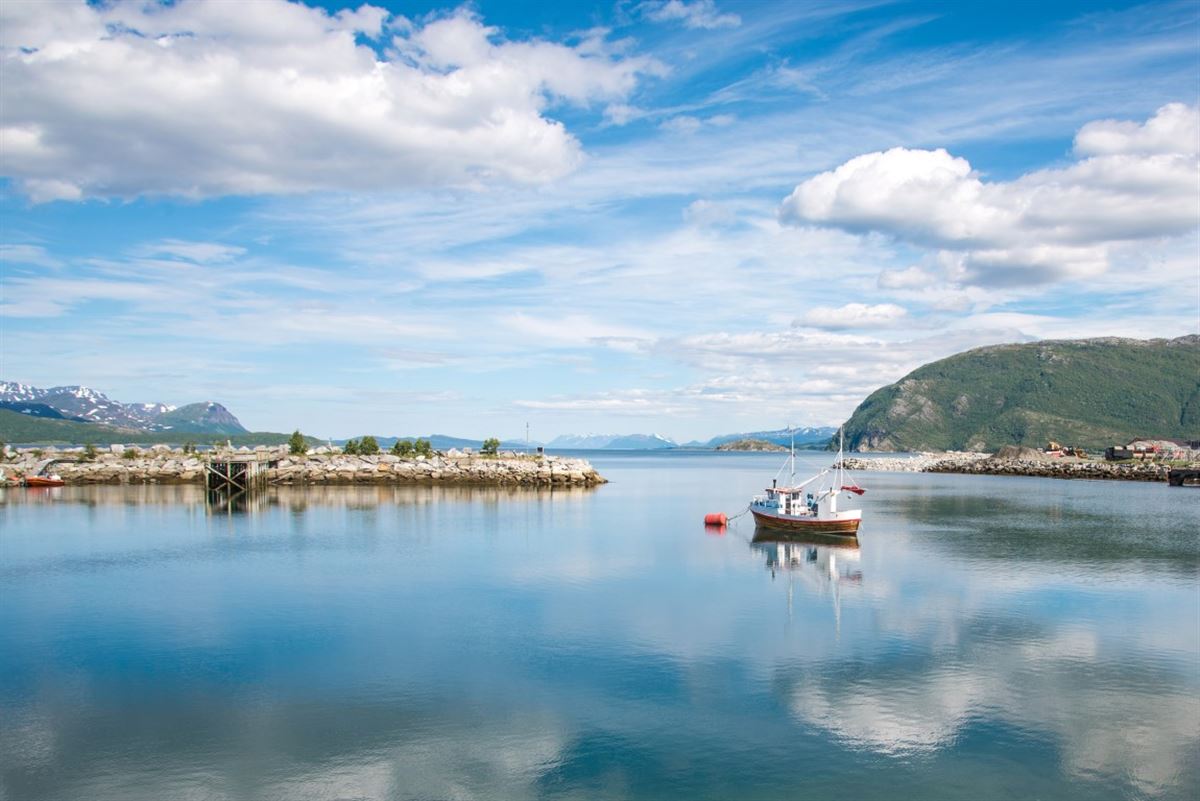 Mit einem typisch norwegisch-abwechslungsreichen Frühstück starten wir in den Tag. Über die eisfreie, weil beheizte (!) Fußgängerzone Storgata geht's anschließend zum Hafen, dem eigentlichen Herzen der Stadt. Auf der anderen Seite des Wassers machen wir schon von Weitem das Wahrzeichen Tromsös aus, die Eismeerkathedrale. Der Weg dorthin: luftig - zu Fuß nehmen wir die Brücke über den Tromsösund und genießen von hoch oben den Panoramablick auf City und umliegenden Berge. Nach unserem Besuch des minimalistischen Gotteshauses per Linienbus zurück in die Innenstadt und hinein in die zeitlos-stylische Bibliothek - wie üblich in Skandinavien auch hier ein Ort zum Wohlfühlen! Noch Zeit für Besorgungen, dann legt unser Postschiff ab! Mehrere Stunden entfernen wir uns immer weiter von vertrauter Zivilisation. Die Natur wird spürbar rauer, die Gegend immer einsamer. Unser Ziel: Skjervöy, ein Fischerort - gefühlt am Ende der Welt.