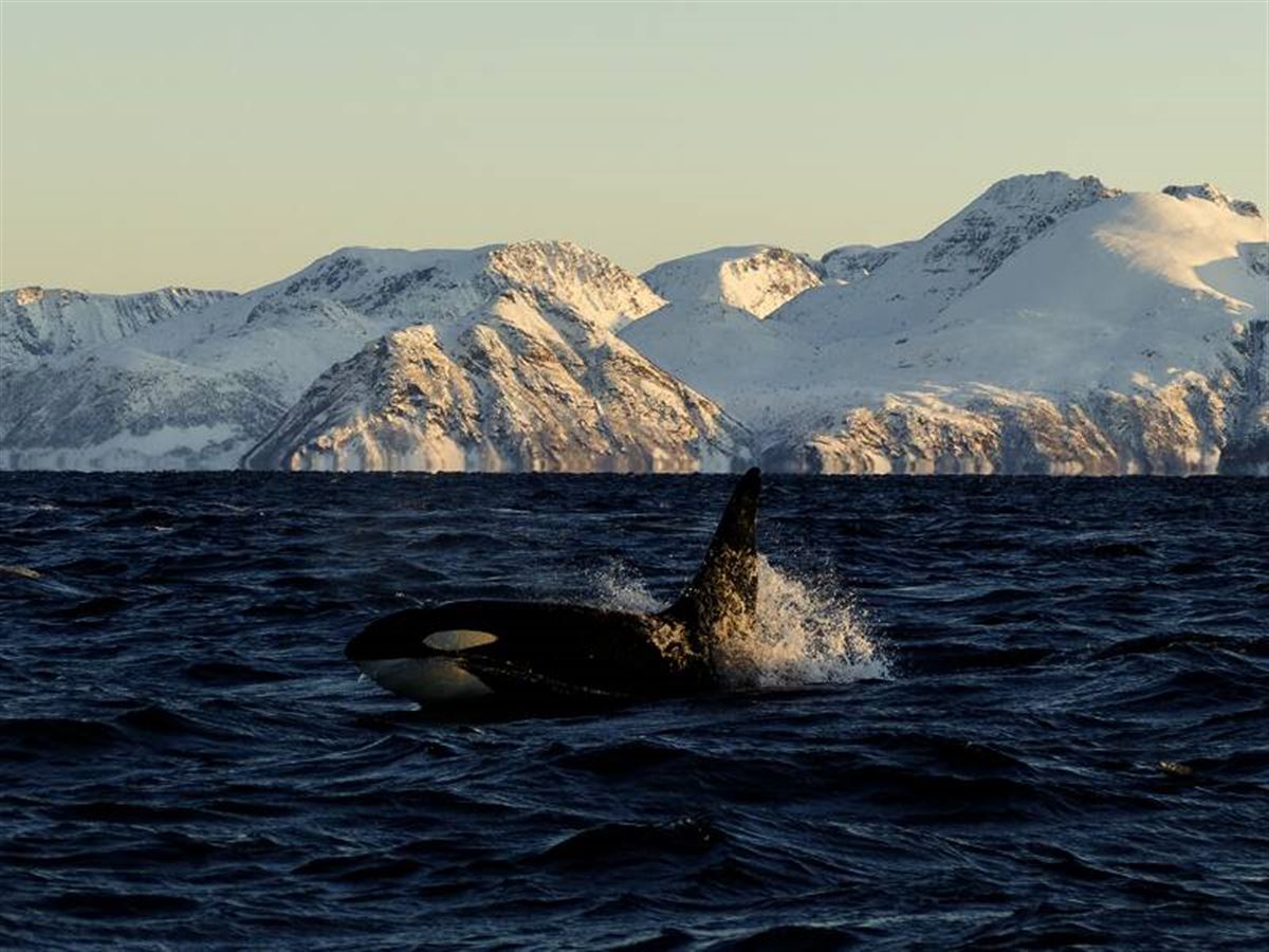 Seit ein paar Jahren tummeln sich in den Gewässern des weiten Fjordes Kvaenangen von November bis Januar Gruppen hungriger Orcas, die hier riesigen Heringsschwärmen nachstellen. An Bord eines wendigen, PS-starken Kabinenkreuzers machen wir uns mit einem erfahrenen Skipper auf den Weg zu ihnen! Aufmerksam huschen unsere Augen übers Meer und suchen nach den charakteristischen langen Finnen der Tiere - jetzt brauchen wir nur noch eine Portion Glück! Um uns herum eine raue Traumlandschaft: Im sanften Licht des kurzen Wintertages grüßen verschneite Berge am Horizont. Nachmittags sind wir glücklich und erschöpft zurück im Quartier. (Hinweis: Naturgemäß gibt es keine Garantie für eine Walsichtung! Außerdem verlagern die Orcas alle paar Jahre ihre Fanggründe und folgen dabei sich verändernden Meeresströmungen - dies kann niemand vorhersagen. Ob sie wiederkehren, weiß man erst im Winter.)