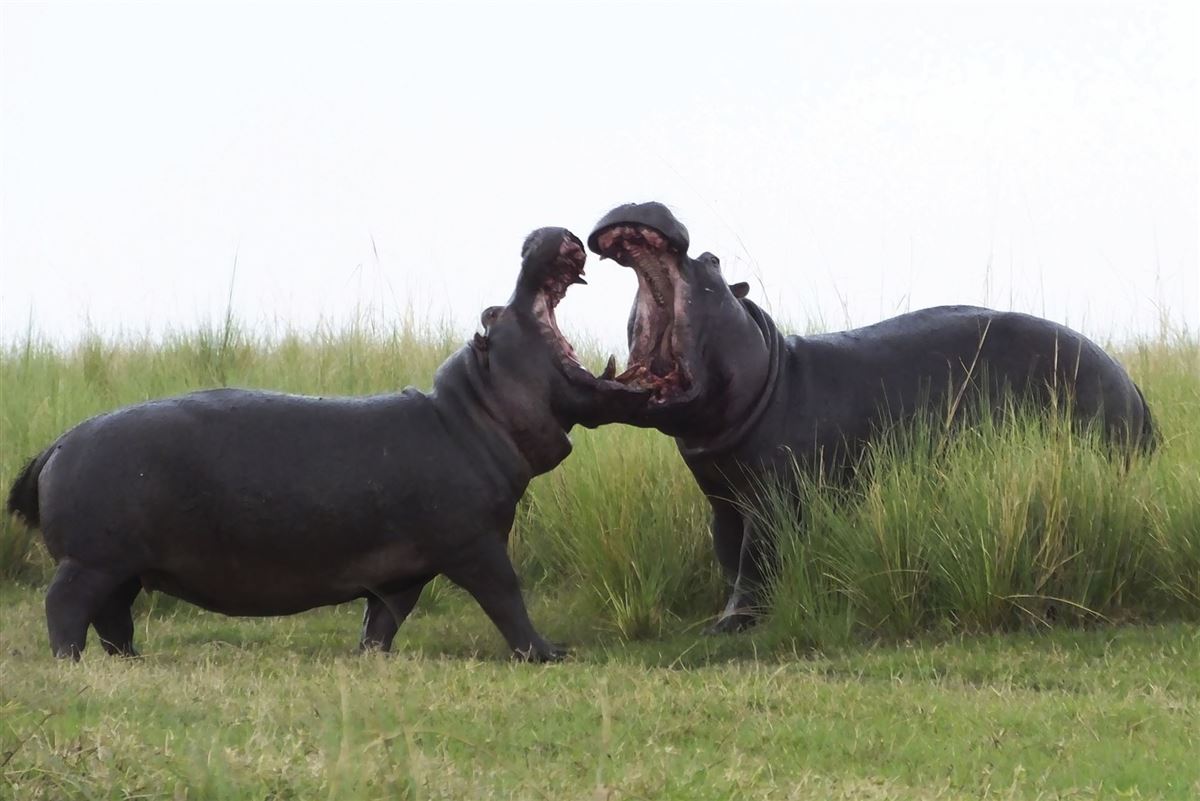 Von den Mokoros aus Erkundungen. In den Lagunen und Seen leben Krokodile, Flusspferde und an den schilfumsäumten Wasserkanälen lebt eine prächtige Vogelwelt. Zwischendurch immer wieder mal eine Pirsch zu Fuß auf den Inseln, vielleicht sichten wir die seltene und scheue Sitatunga-Antilope.