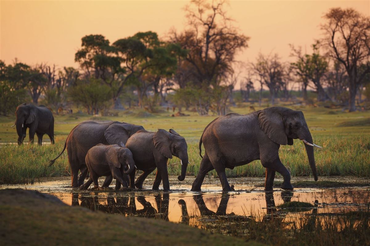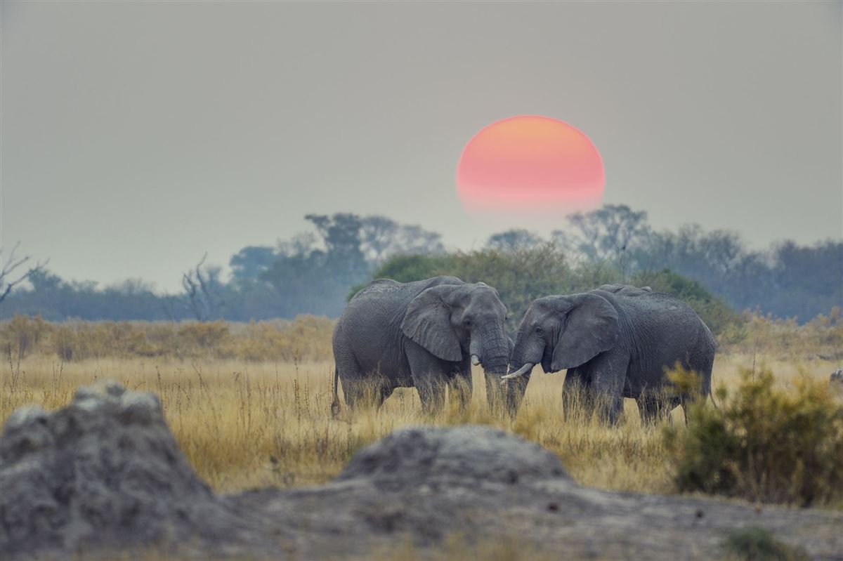 Am frühen Morgen eine Safari in offenen Fahrzeugen und nachmittags eine ca. dreistündige Bootssafari, die Uferbänke des Chobe-Flusses entlang. Hier leben große Flusspferdherden, am Ufer sonnen sich Krokodile. Am beeindruckendsten sind sicherlich die riesigen Elefantenherden, die spätnachmittags dichtgedrängt am Ufer ihren Durst löschen. Zumeist endet der Tag mit einem farbenprächtigen Sonnenuntergang.