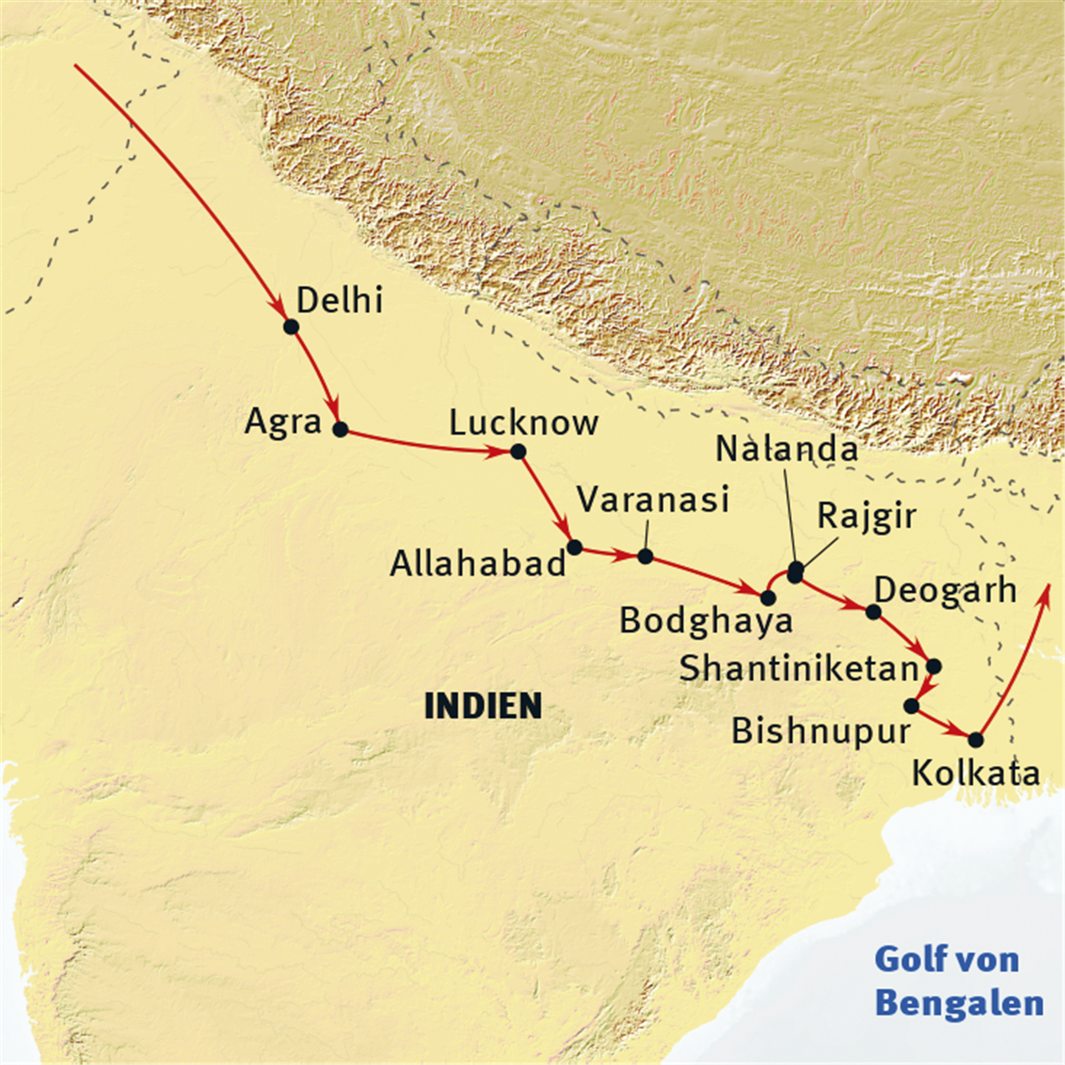 Heute erwartet uns die längste Etappe unserer Reise. Auf unserem Weg nach Bodghaya (255km, ca. 6-7 Std.) halten wir in Sasaram, eine der ältesten Städte Indiens. Hier besuchen wir das Sher Sha-Mausoleum. Am späteren Tag besuchen wir den Mahabodhi-Tempel mit dem Mahabodhi-Baum. Dieser Platz ist sowohl für Hindus als auch Buddhisten ein wichtiger Pilgerort.