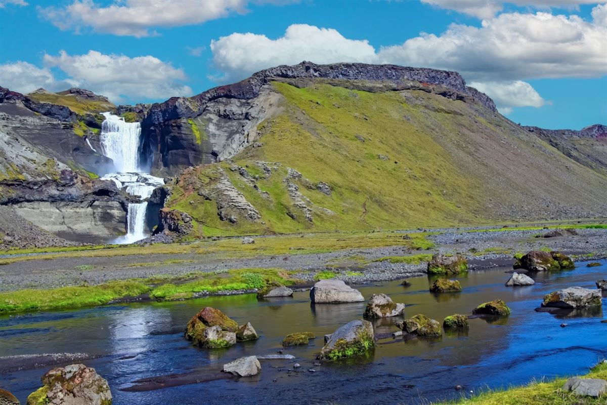 Nächste Runde unseres Island-Abenteuers: Unser Fahrer nimmt den Abzweig von der Ringstraße ins Hochland. Am Rand der gigantischen Feuerschlucht Eldgja starten wir zur Wanderung durch Landschaften aus leuchtend grünen Moospolstern und tiefschwarzem Lavagestein bis hin zu einem mehrstufigen Wasserfall. Je nach Lust, Laune und Kondition kann die einstündige Wanderung ausgedehnt werden. Am Abend erreichen wir unsere Hochlandhütte in Landmannahellir. DIY-Dinner (nicht im Reisepreis enthalten) fernab der Zivilisation, dann entschlummern wir im Schlafsack in die Nacht.