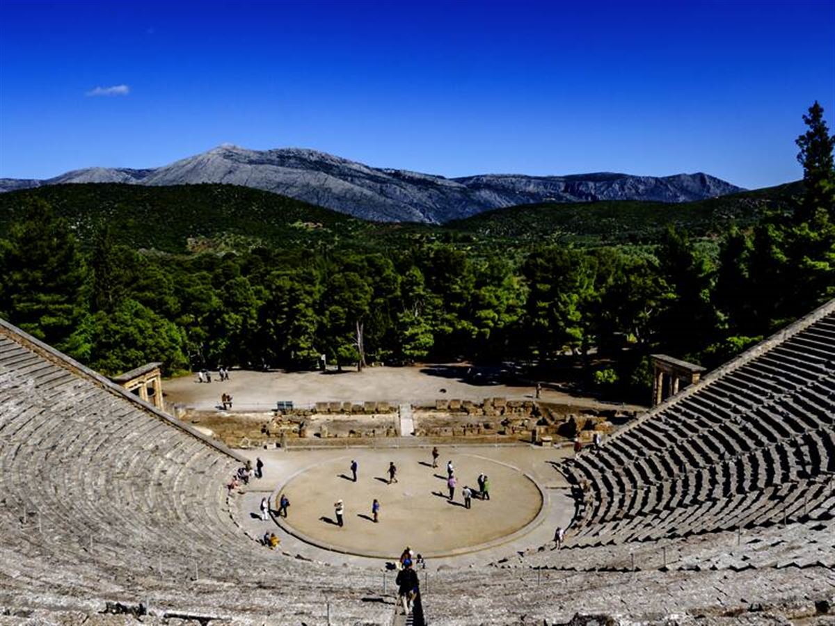 Raus aufs Meer Mit einem Fischerboot treiben wir in die Bucht von Argolis zu einer einsamen Insel. Die Sonne lacht, Sprung in die Wogen, Salz auf der Haut. Sofia verwöhnt uns kulinarisch: Lamm, Sardinen & Co. über der Glut positionieren, dazu ein Glas griechischen Wein. Das ist Urlaub pur ...Stimmengewirr im Bus, dann Flüsterprobe im Theater von Epidauros. Ob man im letzten Rang noch hört, was unten auf der Bühne einer sagt? Psst! Sofia wirft eine Münze auf die Steinplatten. Pling – auch noch ganz oben! Womit sich Ingenieure heute das Hirn verrenken, das haben die in der Antike schon voll durchblickt: die Akustik! Dann legen wir zu unserem Grillspaß auf einer einsamen Insel ab.