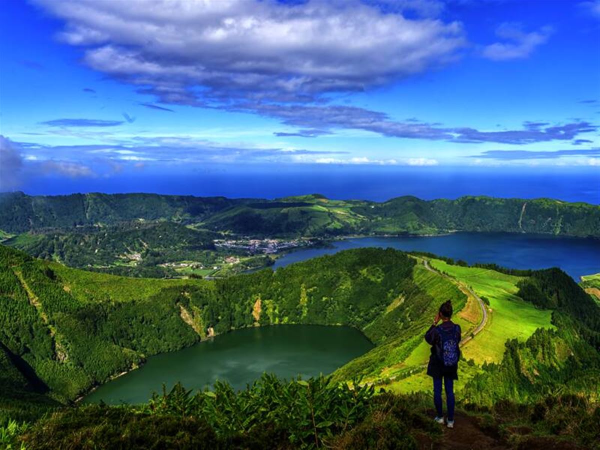 Nach dem Frühstück starten wir um 8 Uhr unternehmungslustig zu einer der größten Naturschönheiten der Azoren: Der Aussichtspunkt Vista do Rei, hoch oberhalb der Caldeira von Sete Cidades, ist der optimale Einstieg in unsere Entdeckerreise. Unter uns funkeln die beiden Vulkanseen Lagoa Azul und Lagoa Verde. Los geht's zur zweistündigen Panoramawanderung nach Sete Cidades. Im Ort zeigt uns Joana, wo wir je nach Lust und Laune ein Kanu für den Paddeltrip auf dem Lagoa Azul mieten könnnen. Ausgepowert, aber zufrieden kehren wir am Nachmittag zurück nach Ponta Delgada und stärken uns später mit einem herzhaften azorischen Welcome-Dinner.