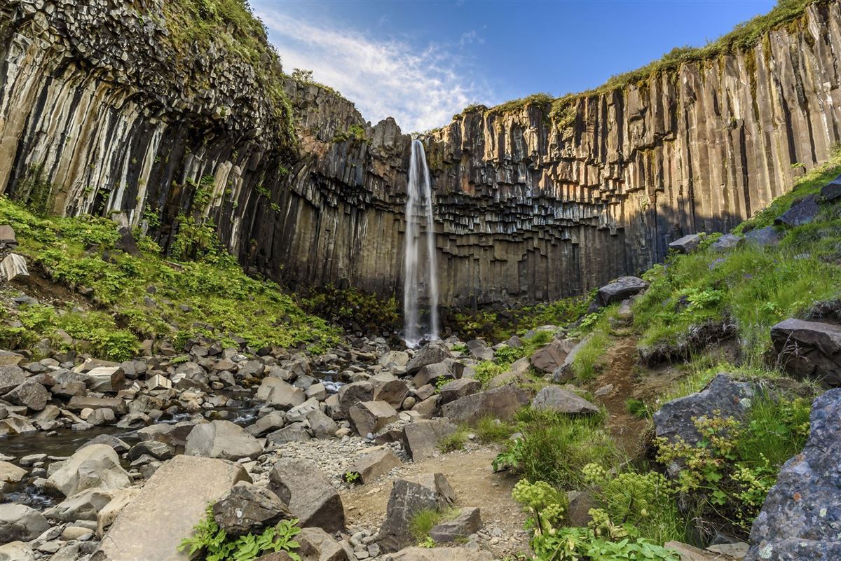 Durch das beeindruckende Lavafeld Eldhraun, welches während eines Spaltenausbruchs im 18. Jahrhundert entstand und weiter durch das größte Sandergebiet Islands, Skeidararsandur, fahren wir nach Skaftafell. Das beliebte Wandergebiet gehört zum Nationalpark Vatnajökull und liegt geschützt zwischen Gletscherzungen. Durch die überraschend vielfältige Vegetation bietet sich eine Wanderung zum Wasserfall Svartifoss an, der zwar wenig Wasser führt, aber über eine sehr imposante Basaltsäulenkante in die Tiefe stürzt (Wanderung insgesamt ca. 1,5 Stunden). Unsere Fahrt führt uns vorbei am gefürchteten Vulkan Öraefajökull zur Gletscherlagune Jökulsarlon. Auf dem Wasser treiben Eisberge in allen Größen und wir kommen ihnen während einer Bootsfahrt mit Amphibienfahrzeugen näher. Wir übernachten am Fuße des Gletschers Vatnajökull. Übernachtung und Abendessen (Tagesdistanz ca. 261 km).