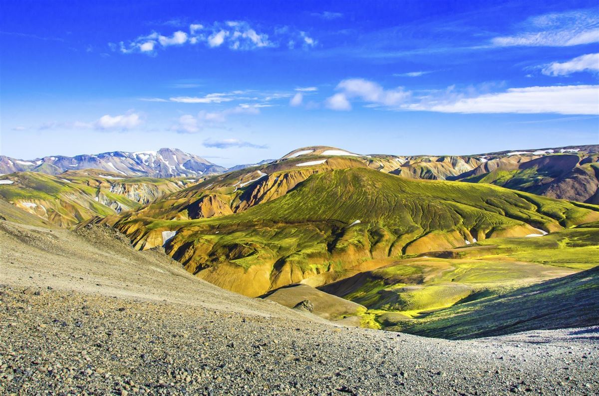 Am Morgen Treffen mit der Reiseleitung und Start unserer Rundreise ins Hochland. Entlang des Gletscherflusses Thjorsa, der mit 230 km längste Fluss Island, und über einige Schotterpisten mit kleinen Flussdurchquerungen erreichen wir das farbenprächtige Rhyolithgebirge Landmannalaugar. Das Gebiet lädt zu kleinen Wanderungen durch die unwirklich, anmutende Landschaft ein. Wer möchte, kann in der natürlichen heißen Quelle baden (Badesachen nicht vergessen!). An den Ausläufern des Vulkans Hekla entlang geht es dann wieder zurück zu unserer Unterkunft. Dieser aktive Vulkan galt im Mittelalter als das „Eingangstor zur Hölle“ und war weit über die Grenzen Islands hinaus bekannt. Durch zahlreiche Ausbrüche in der Vergangenheit machte Hekla immer wieder von sich reden (Tagesdistanz ca. 275 km).