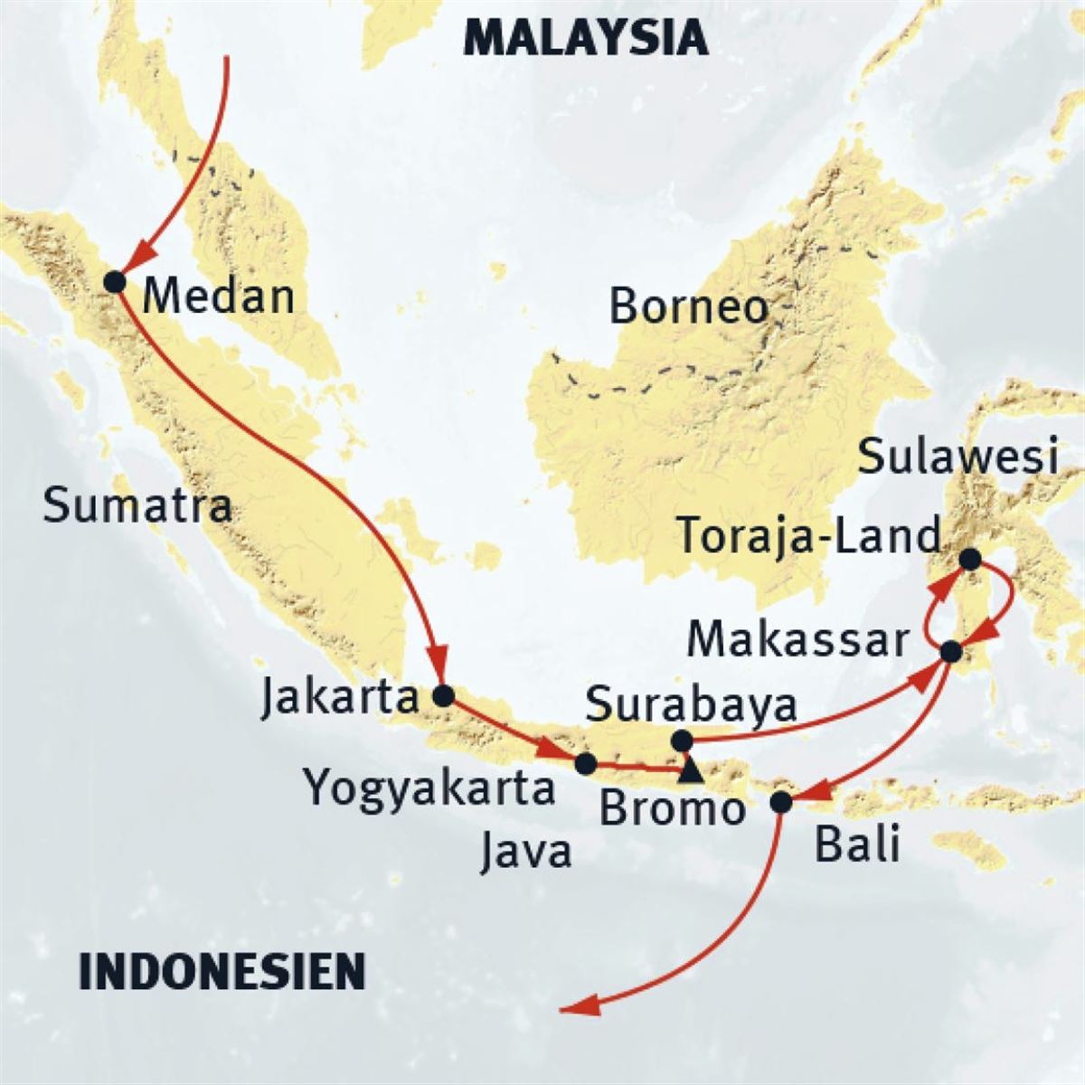 Rückfahrt vom Toba-See nach Medan (190 km). Wir halten kurz in Pematang Siantar - der zweitgrößten Stadt Nord-Sumatras. Flug über Jakarta nach Yogyakarta, Ausgangspunkt für die Besichtigungen in Zentral-Java.