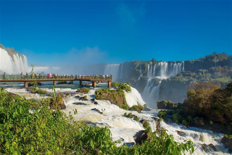 Vorm. Ankunft in Iguassú. Nachm. Erlebnis der größten Wasserfälle der Erde, von der brasilianischen Seite aus mit fantastischem Blick auf den Rio Iguassú und auf die hinabstürzende, etwa 4 km breite Wasserfall-Front.