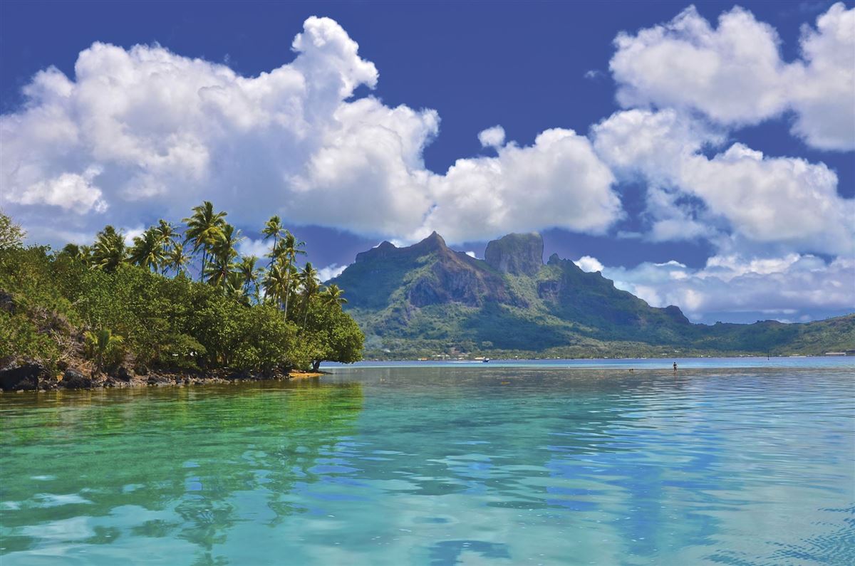 Bora Bora ist vulkanischen Ursprungs und wird von einer türkisblauen Lagune und einem Korallenriff umgeben. Diese Kombination macht die Insel zu einem der schönsten Reiseziele der Welt. In der Mitte der Insel ragen die markanten Vulkanberge Mount Otemanu (727 m) und Mount Pahia empor. Sie gelten als Wahrzeichen der Insel und sind beliebte Fotomotive.