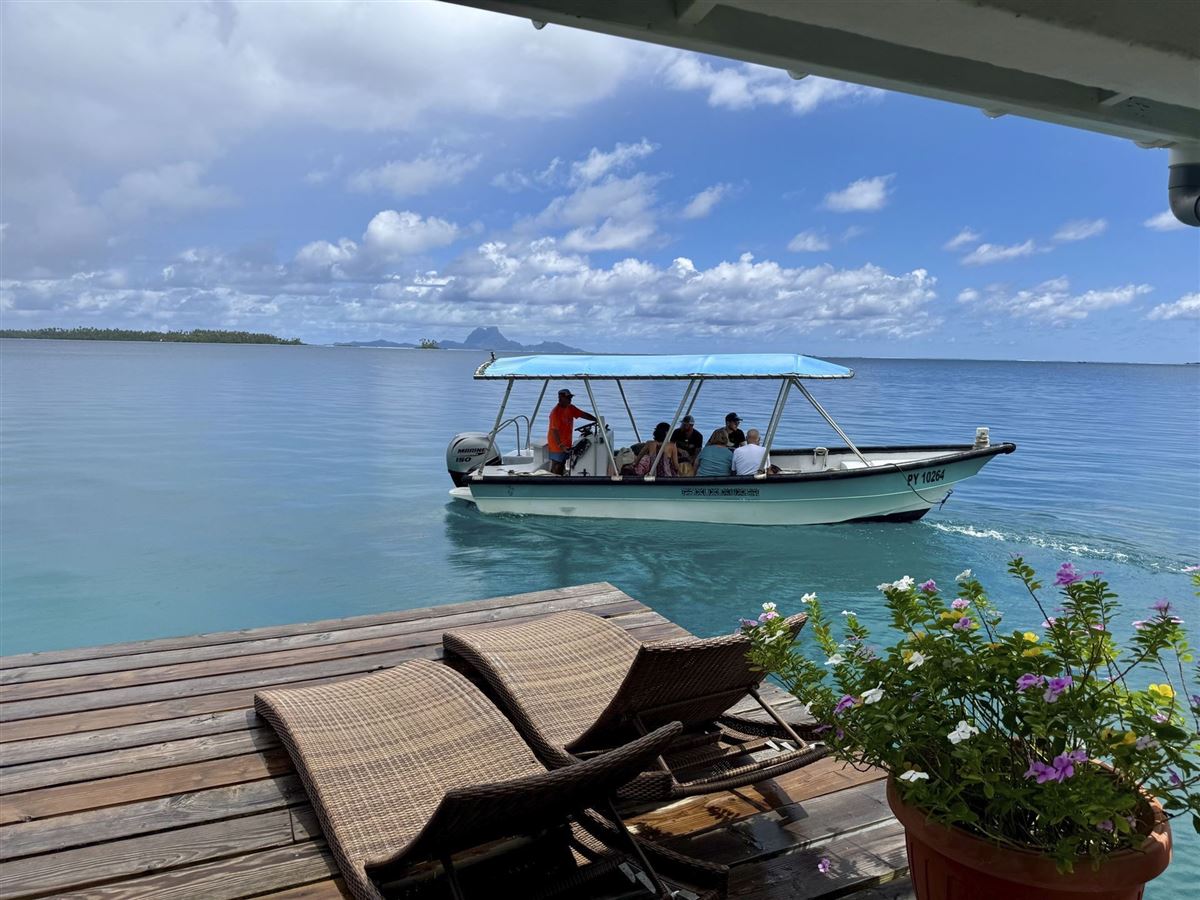 Mittags kurzer Flug von Raiatea nach Bora Bora, der "Perle von Polynesien". Die dramatischen Landschaftsformationen sind schon beim Anflug überwältigend. Die vulkanische Insel, geprägt von der Silhouette der Berge und umgeben von einem Kranz kleiner, vorgelagerter "Motus", gilt zu Recht als einer der schönsten Orte der Welt. Nach der Landung Bootsfahrt durch die riesige, türkisfarben schillernde Lagune zur Hauptinsel, wo uns eine kleine gemütliche Lodge erwartet (3 Nächte).