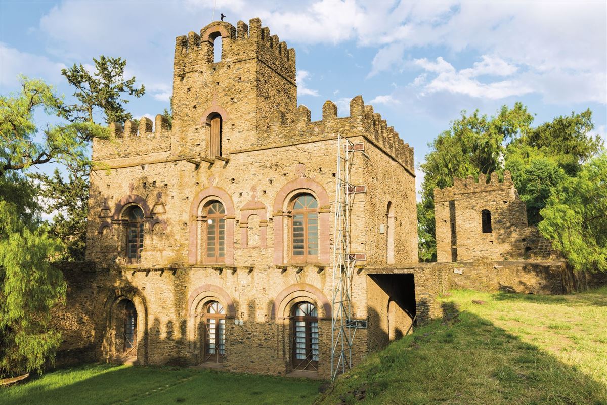 Die von Kaiser Fasilidas im Jahr 1632 gegründete Kaiserstadt Gondar (2.100 m hoch gelegen) war nicht nur Hauptstadt, sondern auch Zentrum der äthiopischen Kunst, Literatur und Wissenschaft. Die Hauptattraktion ist das Palastareal Gemb, eine mächtige befestigte Schlossanlage mit zahlreichen Gebäuden aus dem 17. bis 19. Jahrhundert, die wir vormittags besichtigen. Daneben werden wir das "Bad des Fasilides" sehen, wo während des bedeutendsten Fests der koptischen Christen, dem Timkat-Fest (Termin -01), jedes Jahr im Januar, auch heute noch Menschen getauft werden. Eine weitere Attraktion ist die Debre-Berehan-Selassie-Kirche mit einzigartigen Wand- und Deckenmalereien, die wir uns anschauen werden. Anschließend fahren wir nach Debark. (100 km)