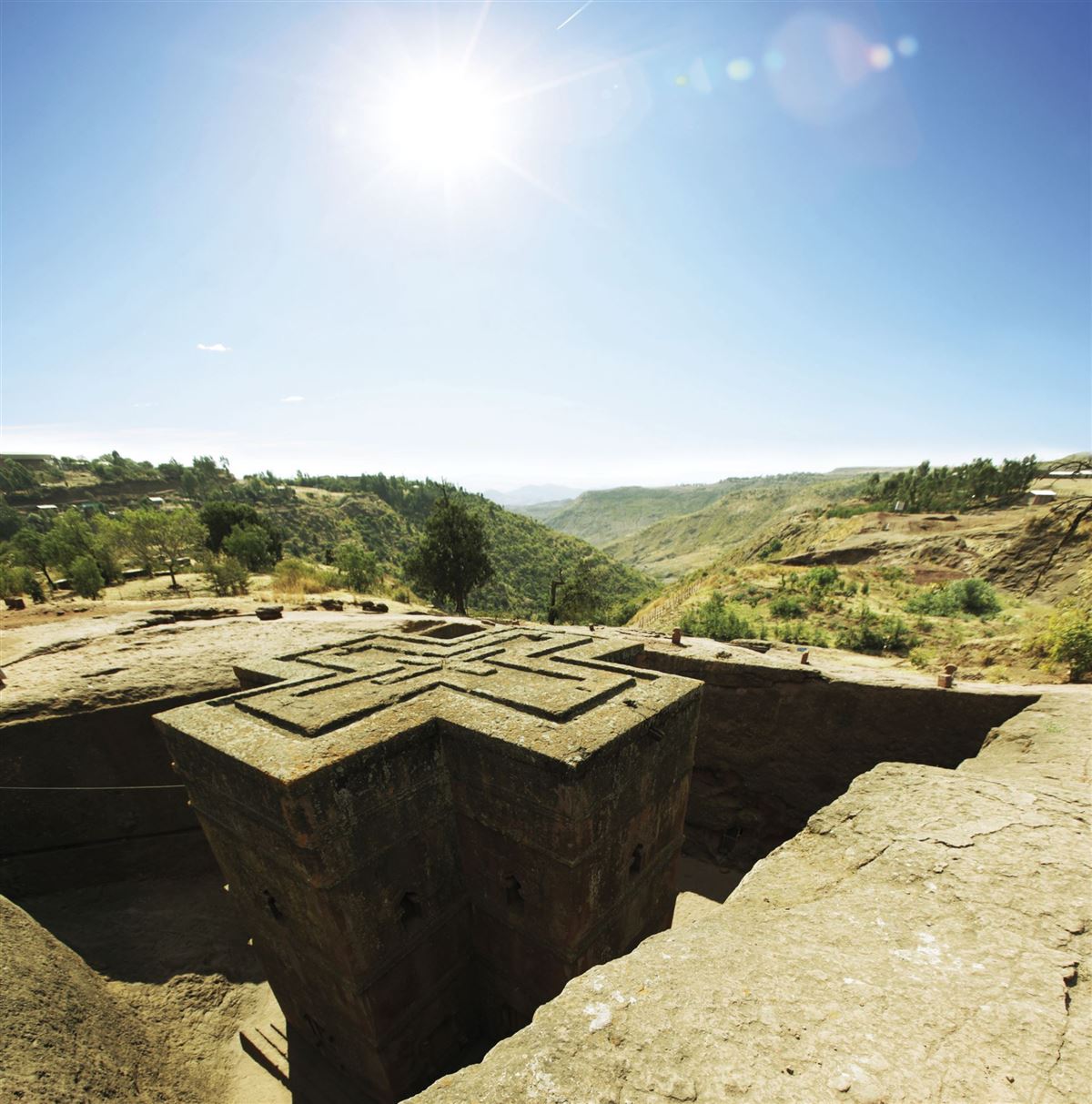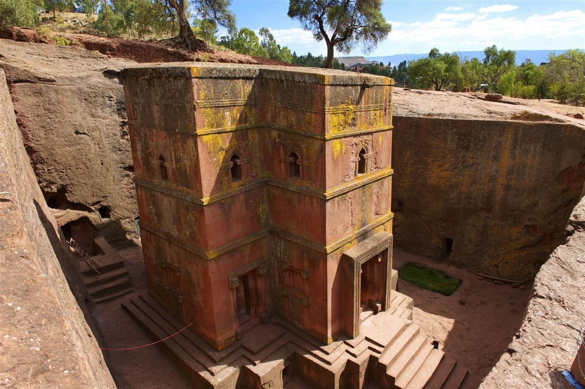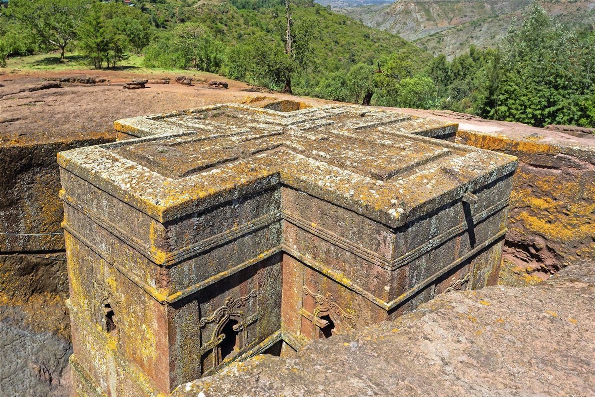 Ein kurzer Flug bringt uns nach Lalibela, das afrikanische "Jerusalem" (UNESCO-Weltkulturerbe). Inmitten von islamischen Reichen entstanden hier im 12./13. Jhd. auf 2.500 m Höhe eine Vielzahl architektonischer Wunderwerke: aus Felsen herausgemeisselte, teilweise monolithische Kirchen. Wir besichtigen die Kirchen der sogenannten "ersten" Gruppe: die Bete Medhane Alem (Welterlöser-Kirche), Bete Meskel (Kreuzkirche), Bete Mariam (Marienkirche), Bete Denegal (Kirche der Jungfräulichkeit), die Doppelkirche Bete Sina (Kirche der Wüste Sinai) und die nur für Männer zugängliche Bete Golgotha (Kirche des Berges Golgotha) mit der Selassie-Kapelle (Dreifaltigkeitskapelle). Prunkstück aller Bauten ist die etwas abseits gelegene St. Georgs-Kirche (Bete Ghiorghis) in Form eines Kreuzes, die wir natürlich auch anschauen.