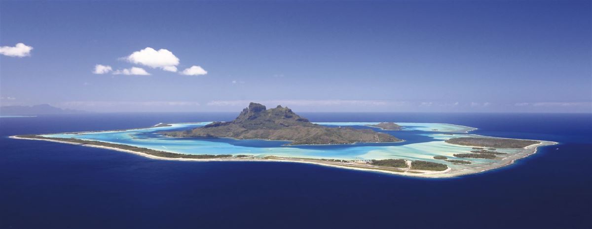 Vormittags noch auf Tahiti, mittags kurzer Flug nach Bora Bora, der "Perle Polynesiens" (2 Nächte). Landung auf einer vorgelagerten Insel ("Motu") und Bootstransfer zu unserem Hotel auf einem weiteren Motu, umgeben von den Türkisfarben des Südpazifiks und mit Blick auf die sattgrünen Vulkanberge Bora Boras, mit dem Zentralmassiv des "Otemanu", über 700m hoch - eine grandiose Kulisse.