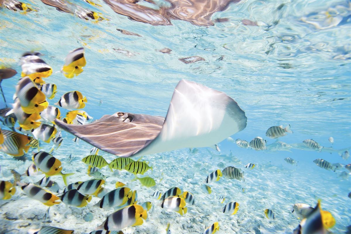 Heute ein Höhepunkt der Reise, eine ganztägige Fahrt mit dem Auslegerboot durch die unglaublich schöne, weite Lagune, die mit ihrer reichen Tierwelt begeistert. Wir sehen Rochen und Haie, und lassen uns beeindrucken von dem Farbenmeer des Korallenriffs. An einer der schönsten der vorgelagerten Inseln halten wir, dem "Motu Tapu", und nehmen hier unser BBQ-Mittagessen ein. Der Nachmittag wird geruhsam auf dem Motu verbracht.