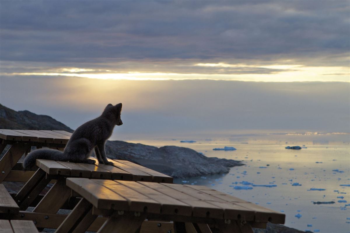 Nach dem Frühstück im Café mit herrlichem Blick über den Fjord liegt haben wir die Wahl zwischen zwei ganz unterschiedlichen Möglichkeiten, Eqi zu erleben. Wir können in der Lodge bleiben und die Ruhe genießen oder wir nehmen an einer geführten Wanderung teil, auf der Spuren von Paul-Émile Victor bis an den Rand des grönländischen Inlandeises. Die Route führt durch abwechslungsreiches Gelände mit Schmelzwasserseen, Felsformationen und eindrucksvollen Ausblicken. Unterwegs berichtet die Reiseleitung über die Naturgewalten, den Klimawandel und die Geologie der Region. Die Wanderung ist körperlich anspruchsvoll, aber der Lohn ist groß: Vor dem gewaltigen Inlandeis zu stehen und seine Präsenz zu spüren, ist ein unvergessliches Erlebnis. Wir müssen kein Leistungssportler sein, sollten jedoch über eine normale Fitness verfügen und sich im unwegsamen Gelände wohlfühlen. Am Abend kommen wir im Café wieder zusammen, wo das Küchenteam warme Gerichte aus grönländischen Zutaten serviert. Vielleicht erleben wir, wie die Sonne den Himmel golden über Eisbergen und Bergen färbt – oder hören ein weiteres Grollen des Gletschers, das uns daran erinnert, wie nah wir der Natur wirklich sind. Danach heißt es: letzte Übernachtung in der Glacier Lodge Eqi.
