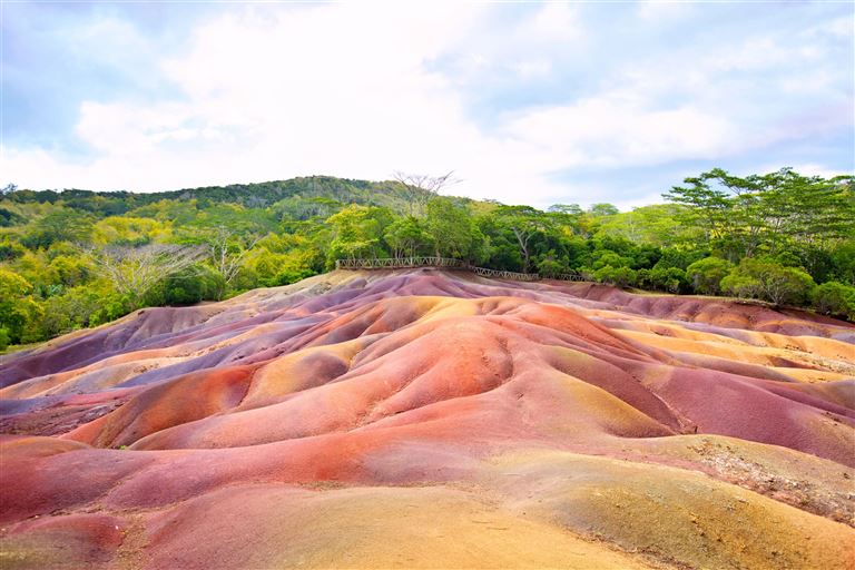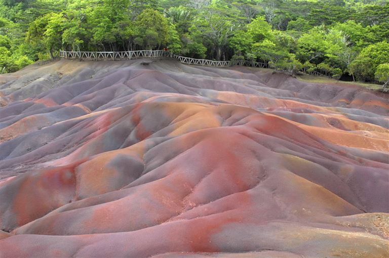 Mauritius abseits der Touristenstrände: Im Black-River-Gorges-Nationalpark erwarten uns tosende Wasserfälle und üppige Bergwälder, in denen Mauritiusbülbül, Mauritius-Brillenvogel, Mauritiusweber und andere endemische Vögel durchs Geäst flattern. Nach einem Blick in den erloschenen Vulkan Trou aux Cerfs geht es vorbei an Kaffeeplantagen, Zuckerrohrfeldern zu siebenfarbiger Erde. Was ist hier passiert? Woher stammen diese Farben? Ihre Reiseleiterin weiß mehr. Und schließlich begegnet uns am Shivaheiligtum von Grand Bassin, dem heiligen See der hiesigen Hindus, wieder die indische Seele der Inselwelt im Indischen Ozean. 70 km.