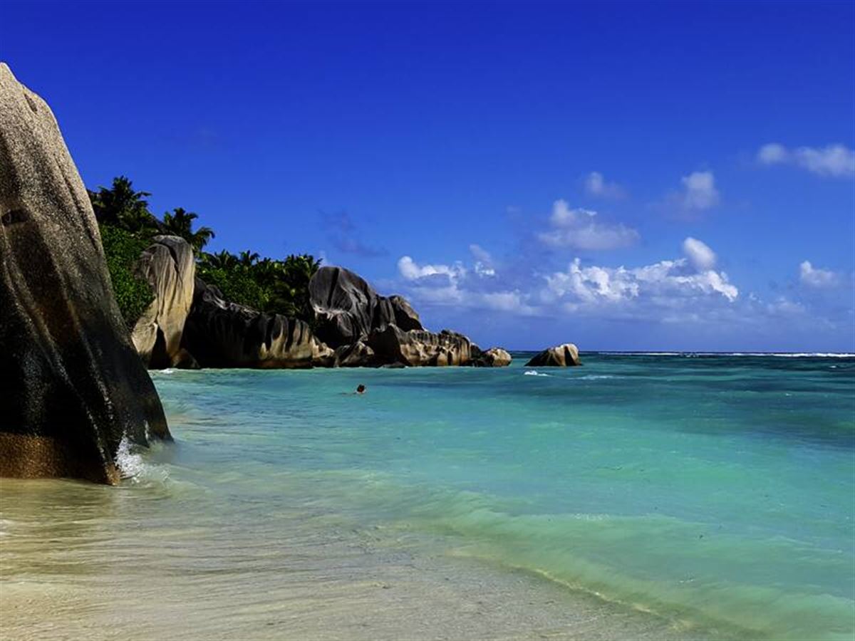 Gerade mal 15 Minuten braucht die Fähre rüber zur kleinen Nachbarinsel. Auf La Digue mischen wir uns unter die Insulaner: lässiger Inselalltag im entspannten Tempo und fröhliche Musik, die durch die Gassen weht. Jetzt eine Kokosnuss frisch vom Baum! Rund um das alte Plantagenhaus der L'Union Estate wachsen noch mehr tropische Genüsse. Auch das Seychellencurry beim Mittagessen schmeichelt Zunge wie Nase. Und dann lassen Sie am Anse Source d'Argent im Kopfkino die Bacardi-Rum-Werbung ablaufen: rund geschliffene Granitfelsen am weißen Korallenstrand. Heute breiten wir unsere Badetücher mitten in der Filmkulisse aus – fast zu schön, um wahr zu sein!