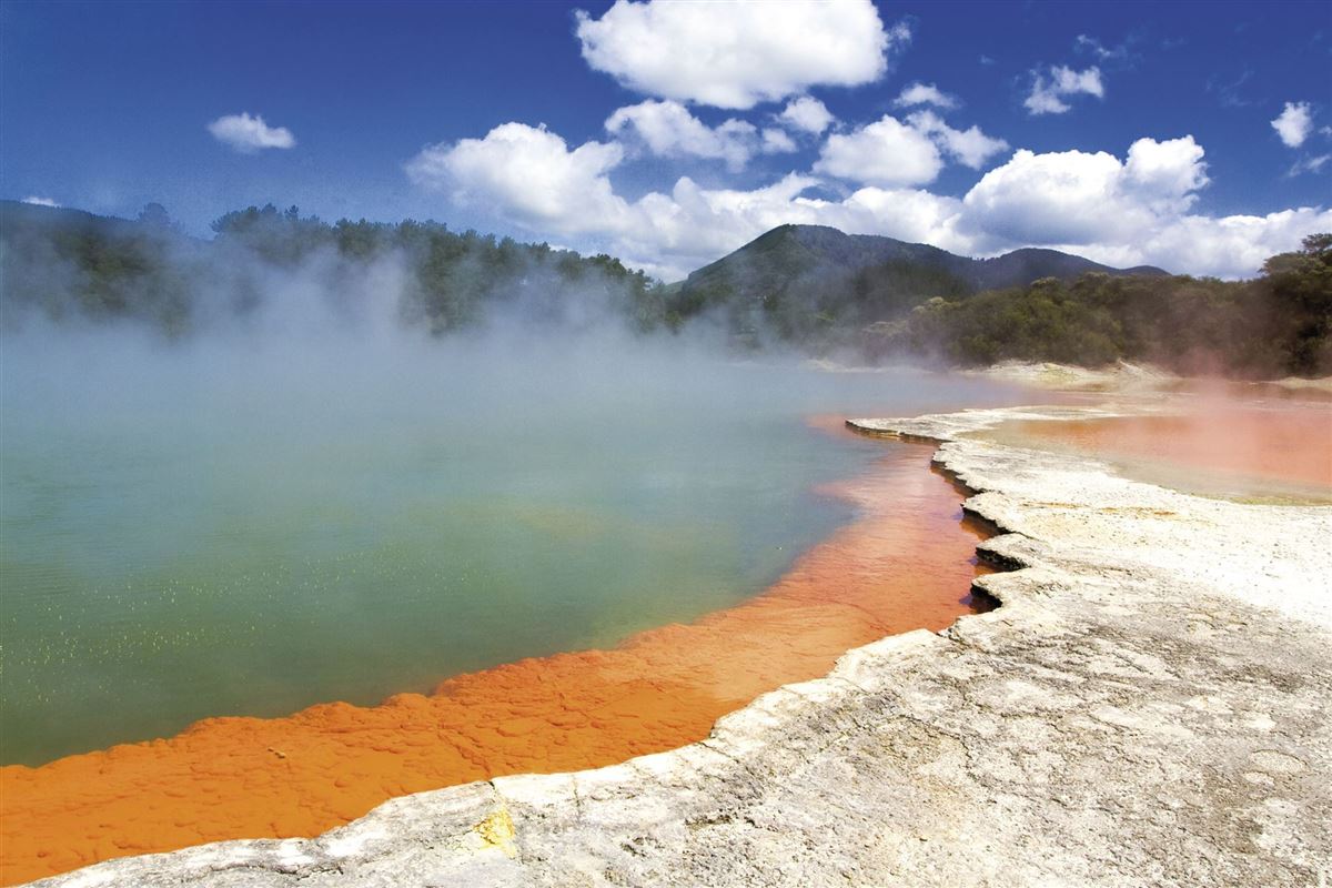 Zunächst zum tiefblauen Taupo-See. Danach besuchen wir die Maori des Ngati-Tuwharetoa-Stammes. Nach dem Besuch der mächtigen Huka-Wasserfälle des Waikato-Flusses erreichen wir das Tagesziel Rotorua, Thermalgebiet und wichtiges Zentrum der Maori-Kultur (190 km).