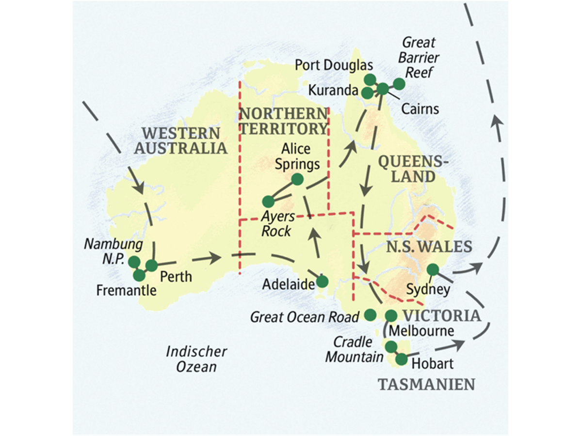 Der angezeigte Reiseverlauf und die Hotels beziehen sich auf den angegebenen Abreisetermin. Bei anderen Terminen dieser Reise können sich Reiseverlauf und Hotels ändern.