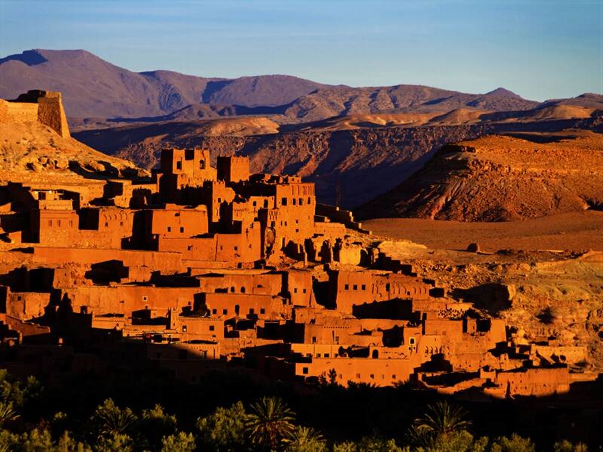 Die wehrhaften Kasbahs, von geschickten Baumeistern aus dem Lehm der Wüste gestampft, verstecken sich durch warme Erdfarben perfekt getarnt in den Falten der Berge. Sind die Reformen aus der Hauptstadt auch im Bergland angekommen? Ein Thema Ihres Reiseleiters auf dem Weg zum Dadesfluss, wo in zahlreichen Oasen Feigen, Pfirsiche und Aprikosen reifen. Für Landschaftsspektakel sorgt die tiefe Schlucht, die der Fluss in den Atlas fräste. In wendigen Kleinbussen geht es an bizarren Felsszenerien vorbei zum Aussichtspunkt. Nachmittags fahren wir weiter nach Ouarzazate, ins "Hollywood der Wüste". 170 km.