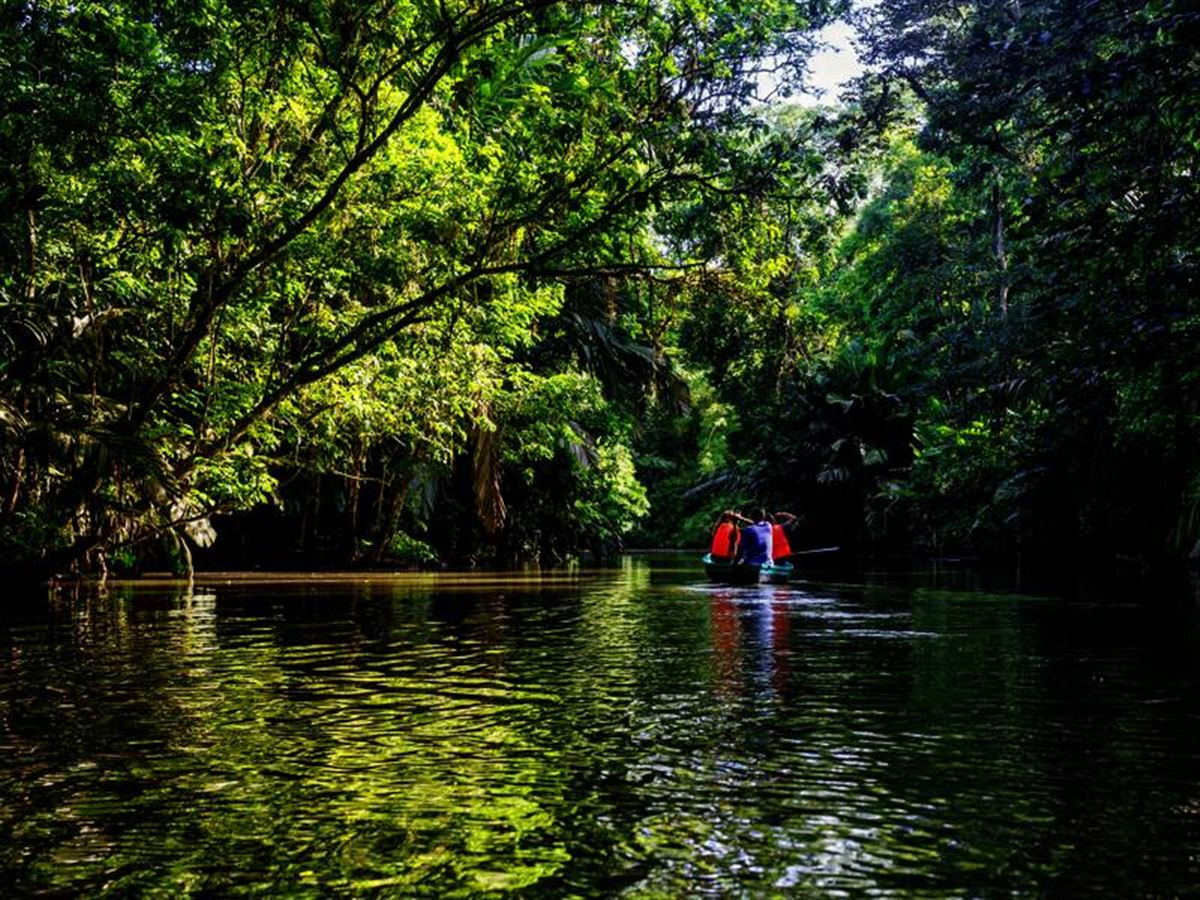 Vom luftigen Hochland in Richtung Karibikküste. 110 km. Dann mit dem Boot durch Kanäle und Lagunen zum Nationalpark Tortuguero, Rückzugsgebiet der bedrohten Grünen Meeresschildkröte. Wunderbar, unsere Lodge direkt am Wasser mit Pool im großen Garten. Doch bevor wir ganz in den Entspannungsmodus umschalten, gibt's im Besucherzentrum ein bisschen Schildkrötentheorie. Zwei Übernachtungen in einer Öko-Lodge im Tortuguero-Nationalpark.