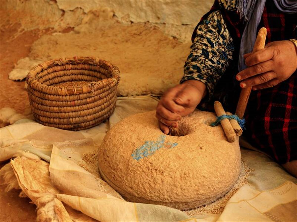 Auf dem Markt von Testour, einer typischen tunesischen Kleinstadt, kaufen wir für unser Picknick ein: frisch gebackenes Brot, Oliven, Käse und Harissa, die traditionelle scharfe Würzpaste. Die Köstlichkeiten lassen wir uns später in aller Ruhe und mit Blick auf die Ausgrabung von Dougga (UNESCO-Welterbe), einer echten antiken Schönheit, schmecken. Sattgrüne Landschaft umgibt die Tempel und das Theater der Römerstadt. Doch vor welchen Herausforderungen steht die tunesische (Land-)Wirtschaft heute? Übernachtung in einem einfachen Hotel bei Dougga. 120 km.