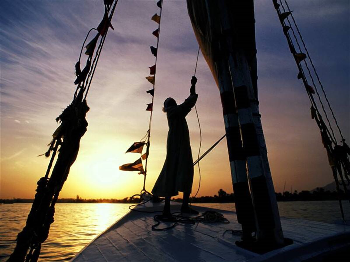 Am Kalabscha-Tempel hören wir von dessen Rettung durch deutsche Archäologen, bevor wir wieder Kurs auf Assuan nehmen. Vom Hochdamm blicken wir zurück auf den Nassersee und sprechen über Sinn und Unsinn des Staudammprojekts, das Tempel und Dörfer verschluckte. Wir beziehen unser Kreuzfahrtschiff auf dem Nil. Bootswechsel - wir steigen um, in eine traditionelle Feluke, die im sanften Nachmittagslicht ihre weißen Segel hisst, und Assuans Kulisse gleitet an uns vorbei. Drei Übernachtungen an Bord der Medea.
