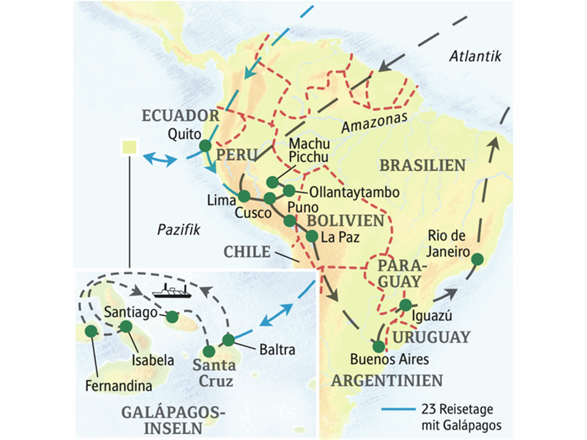 • Freuen Sie sich auf Lima, Machu Picchu, La Paz und Buenos Aires