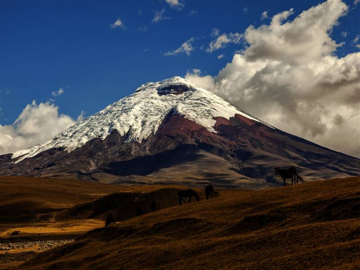 Schnaufend erheben sich Antisana, Illiniza und ihre anderen 19 Feuerkameraden auf der Straße der Vulkane. Einst versuchte hier Alexander von Humboldt vergeblich, den "Hals des Mondes", den 5897 m hohen Cotopaxi, zu bezwingen. Am Fuße des Lavaberges spazieren wir im gleichnamigen Nationalpark zur 3800 m hoch gelegenen Lagune von Limpiopungo. Formschön spiegelt sich der Vulkan mit schneebedecktem Gipfel vor blauem Himmel im See. Wildpferde scharren mit den Hufen, Kondore kreisen über der Grassteppe des Páramos. Am späteren Nachmittag erreichen wir Riobamba (2750 m), vorbei am aktiven Vulkan Tungurahua. Raucht er nur, oder ist es gar Lava, die am Gipfel leuchtet? 290 km.