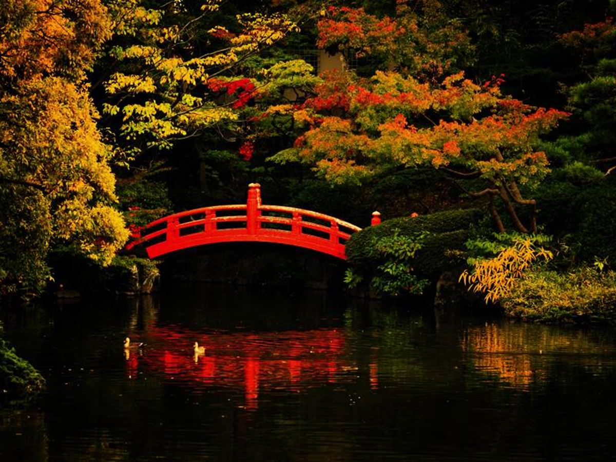 Die stimmungsvollsten Tempel der alten Kaiserstadt warten auf uns: der Goldene Pavillon (UNESCO-Welterbe), der sich selbstverliebt im Teich spiegelt, der Ryoan-Tempel mit seinem Steingarten. Nach dem Mittagessen blicken wir im Vorort Arashiyama von der Togetsukyo-Brücke über die farbenfrohe Landschaft. Am freien Abend Lust auf die alte Teehausgasse Pontocho?