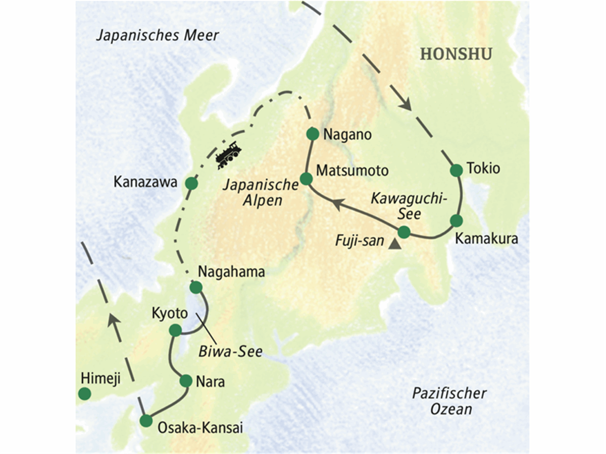 Heute haben Sie frei: Einen Blick auf Kyoto vom frisch restaurierten Kiyomizu-Tempel werfen? In Gion nach Papierfächern stöbern? Oder ein Ausflug mit Ihrer Reiseleiterin im Shinkansen nach Himeji (195 €): Samurais verteidigten auf der Burg des Weißen Reihers (UNESCO-Welterbe) ihr Land. Wer den Aufstieg wagt, wird mit einem herrlichen Panoramablick belohnt. Abends treffen wir uns zum Abschiedsessen und lassen unsere Reise auch kulinarisch Revue passieren.