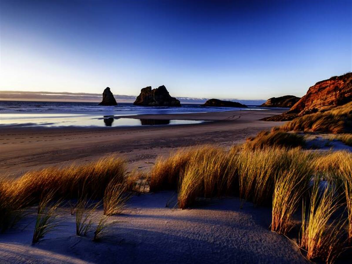 Die Westküste empfängt uns wild und ungezähmt, in unzähligen Grüntönen schimmernd. Am Cape Foulwind verfluchte Entdecker James Cook die widrigen Winde. Die Robben, die hier auf den Felsen dösen, trotzen – wie wir – gelassen den Kapriolen des Wetters. Noch ein Naturspektakel: Die Pancake Rocks stapeln sich, umtost von der Brandung, wie Pfannkuchen übereinander. 300 km. Im Hotel am Naturstrand eingetroffen, schnappen Sie sich am besten gleich die Windjacke und schauen beim Strandspaziergang dem Spiel von Wind und Wellen zu. Und abends, wenn die Sonne farbenstark im Meer versinkt, können Sie ihr mit einem Sauvignon Blanc zuprosten.
