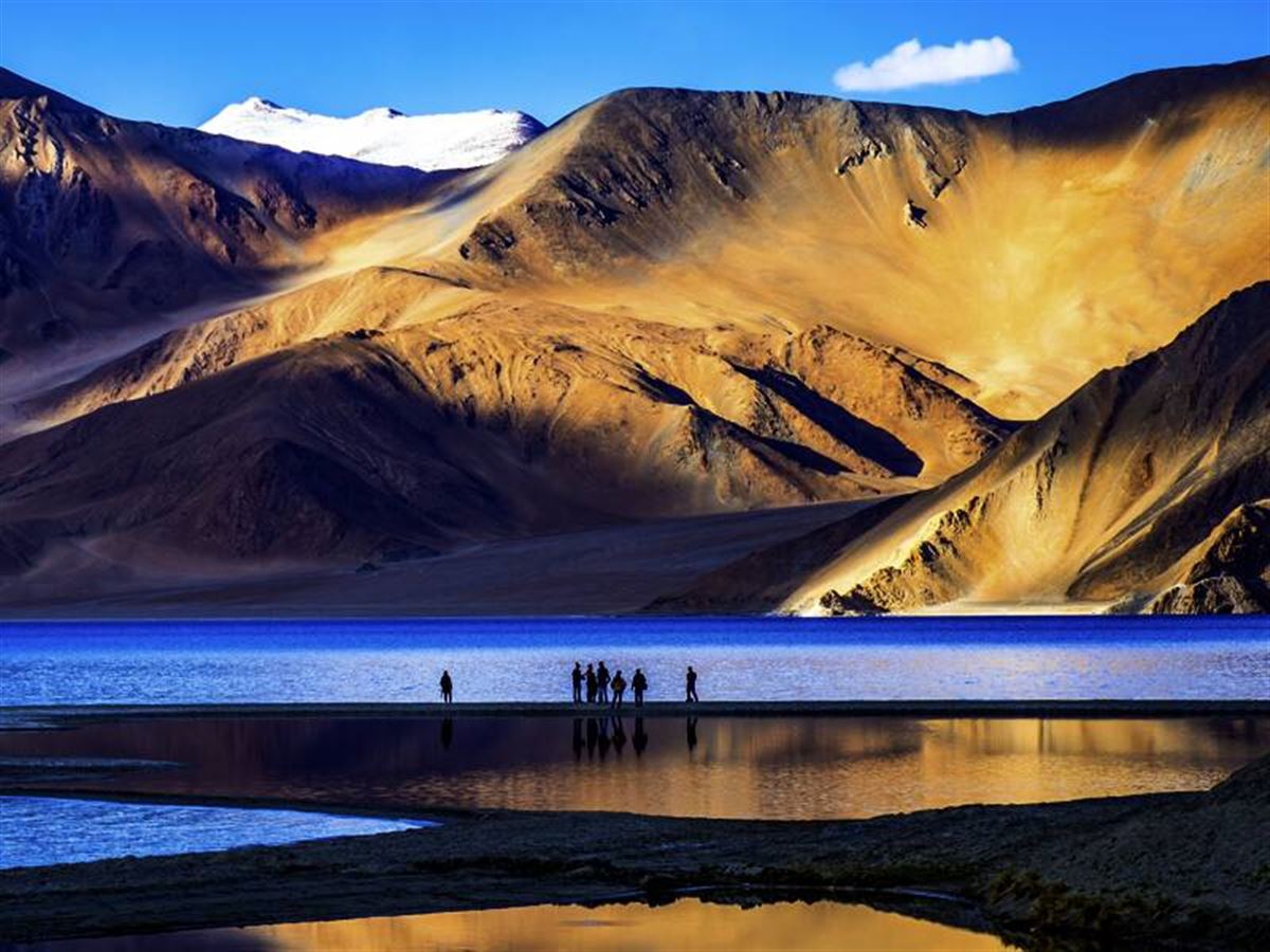 Wir verlassen das Nubratal und steuern einen Ort von magischer Schönheit an: den 134 km langen Pangong-See. Es ist der höchstgelegene Salzwassersee der Welt. Das Nordufer ist von sanften Bergen gesäumt, der Blick auf der Südseite fliegt hinauf zu den schneebedeckten Sechstausendern. Zum Glück bleiben wir hier länger und können beobachten, wie der See im Laufe des Tages seine Farbe wechselt. 170 km. Zwei Übernachtungen am See auf über 4000 m Höhe.